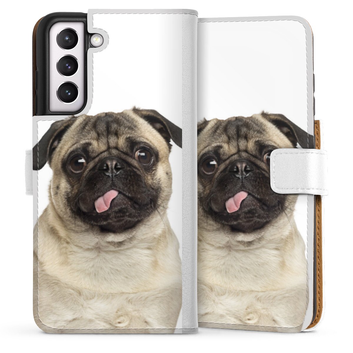 For our Sideflip Case we are using our advanced direct printing technology. The back and frontside are fully printabale, the inside of the phone bag is left unprinted. You can order the phone case without print, printed completely or also with a partial print.