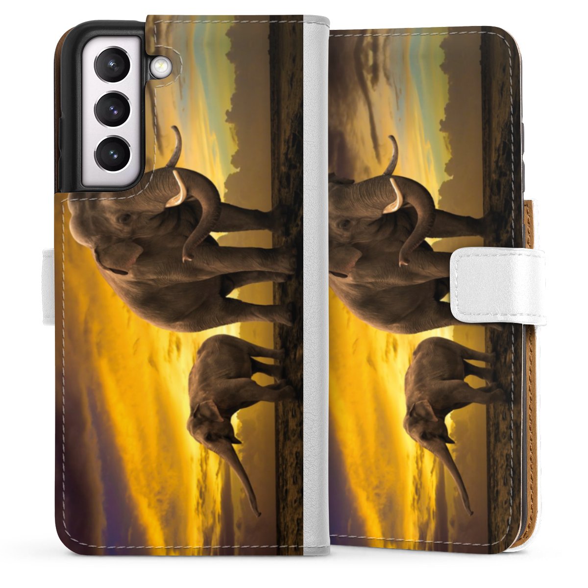 For our Sideflip Case we are using our advanced direct printing technology. The back and frontside are fully printabale, the inside of the phone bag is left unprinted. You can order the phone case without print, printed completely or also with a partial print.