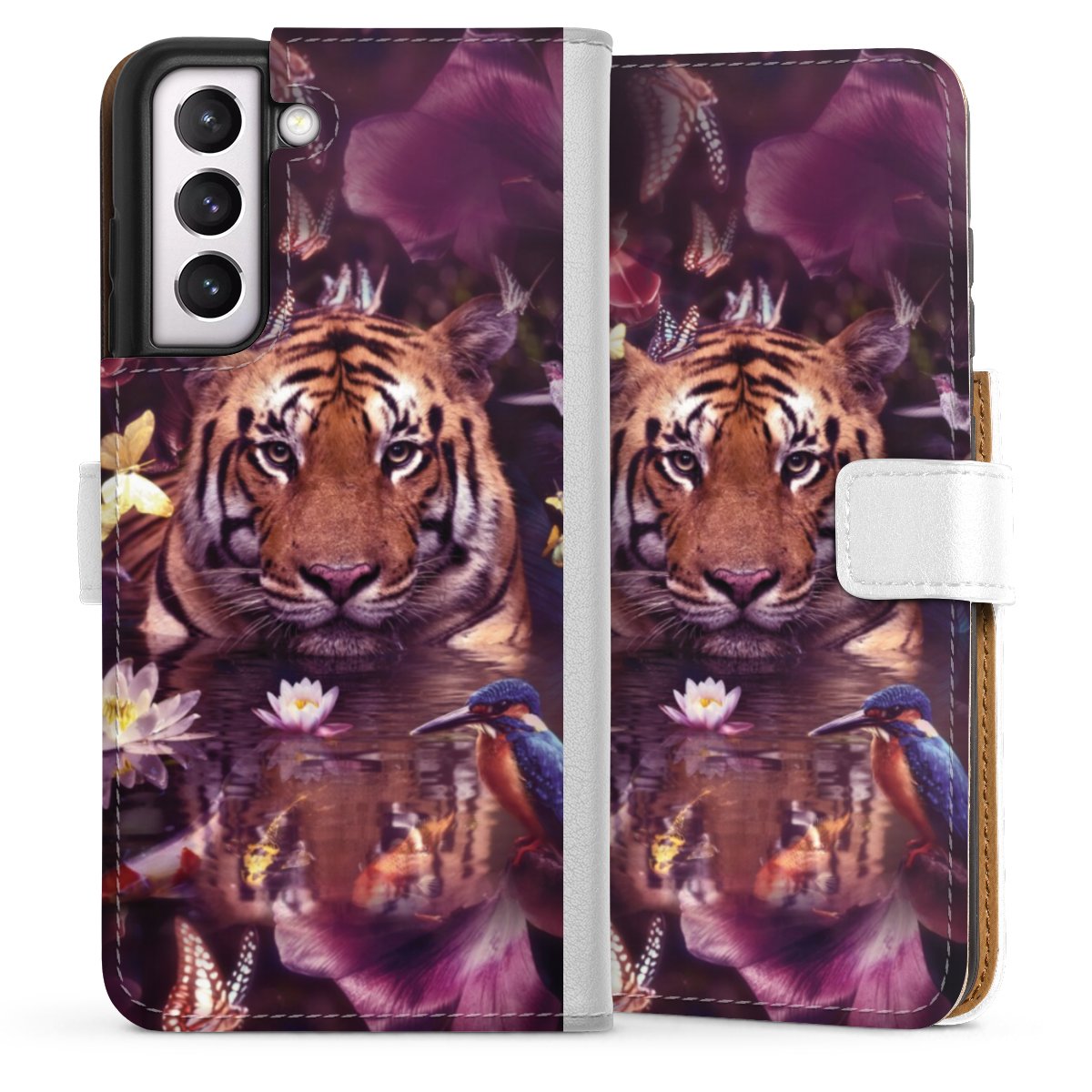 For our Sideflip Case we are using our advanced direct printing technology. The back and frontside are fully printabale, the inside of the phone bag is left unprinted. You can order the phone case without print, printed completely or also with a partial print.