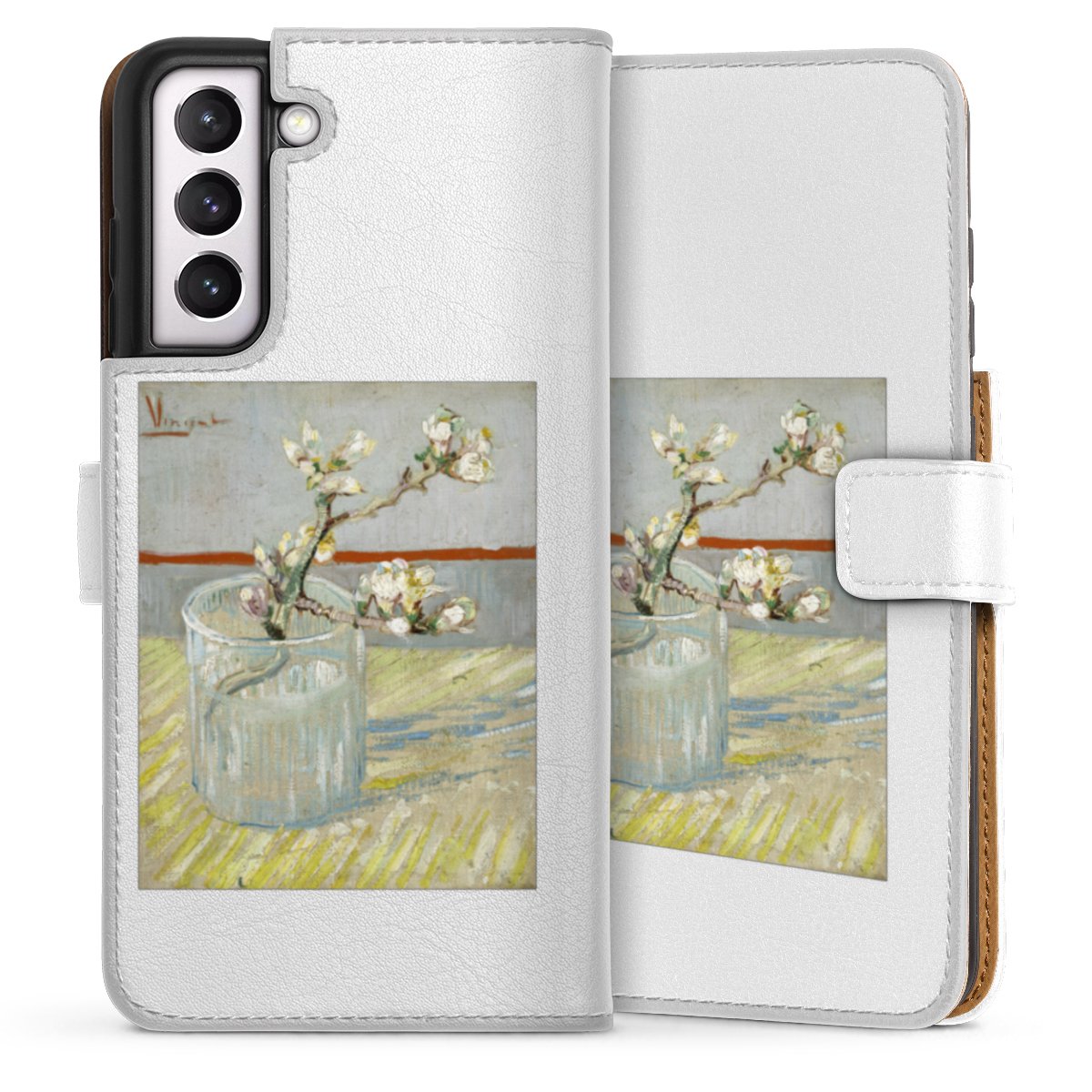 For our Sideflip Case we are using our advanced direct printing technology. The back and frontside are fully printabale, the inside of the phone bag is left unprinted. You can order the phone case without print, printed completely or also with a partial print.