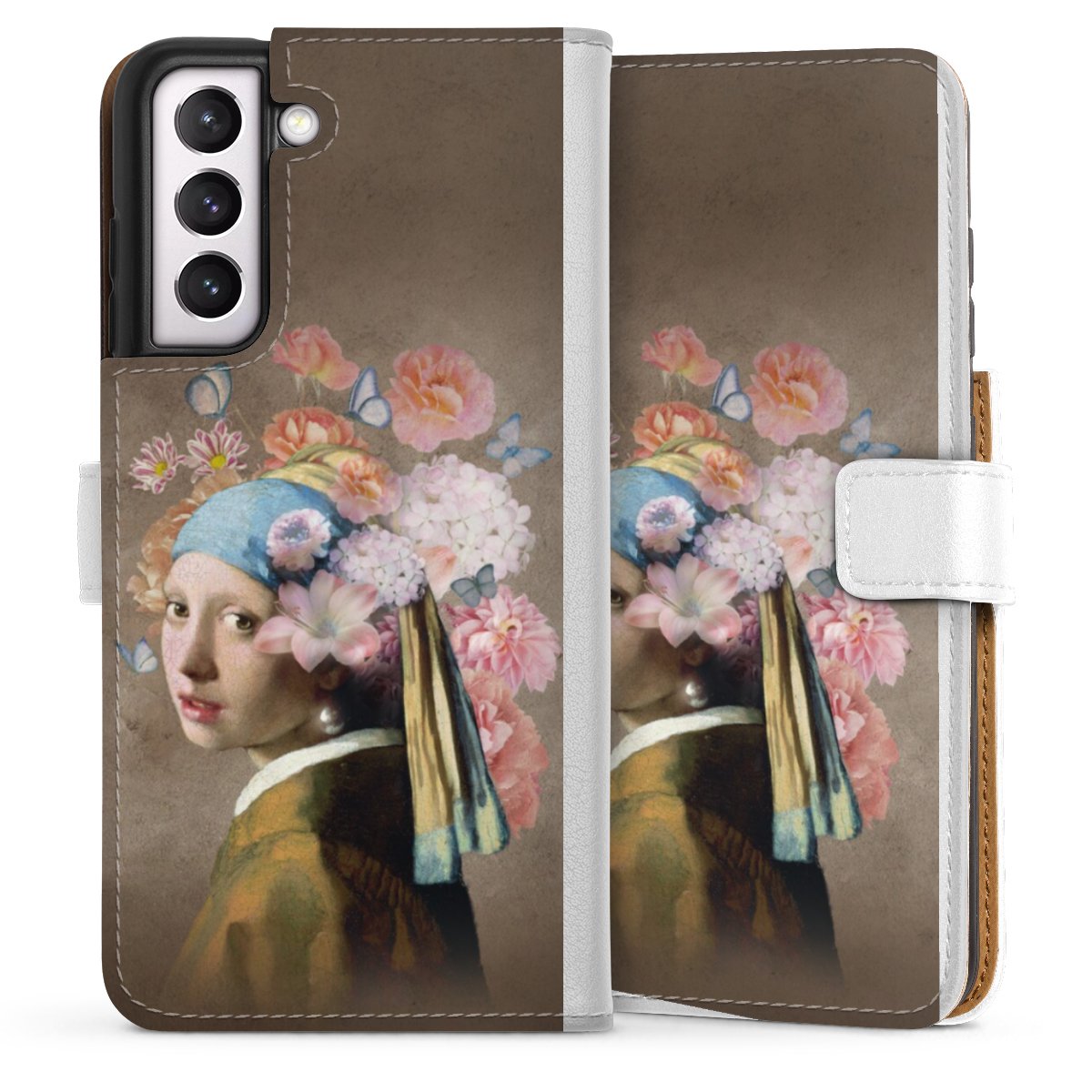 For our Sideflip Case we are using our advanced direct printing technology. The back and frontside are fully printabale, the inside of the phone bag is left unprinted. You can order the phone case without print, printed completely or also with a partial print.