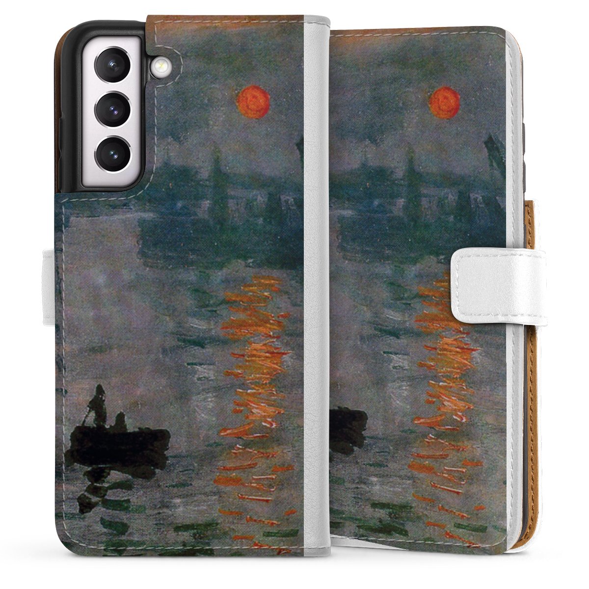 For our Sideflip Case we are using our advanced direct printing technology. The back and frontside are fully printabale, the inside of the phone bag is left unprinted. You can order the phone case without print, printed completely or also with a partial print.