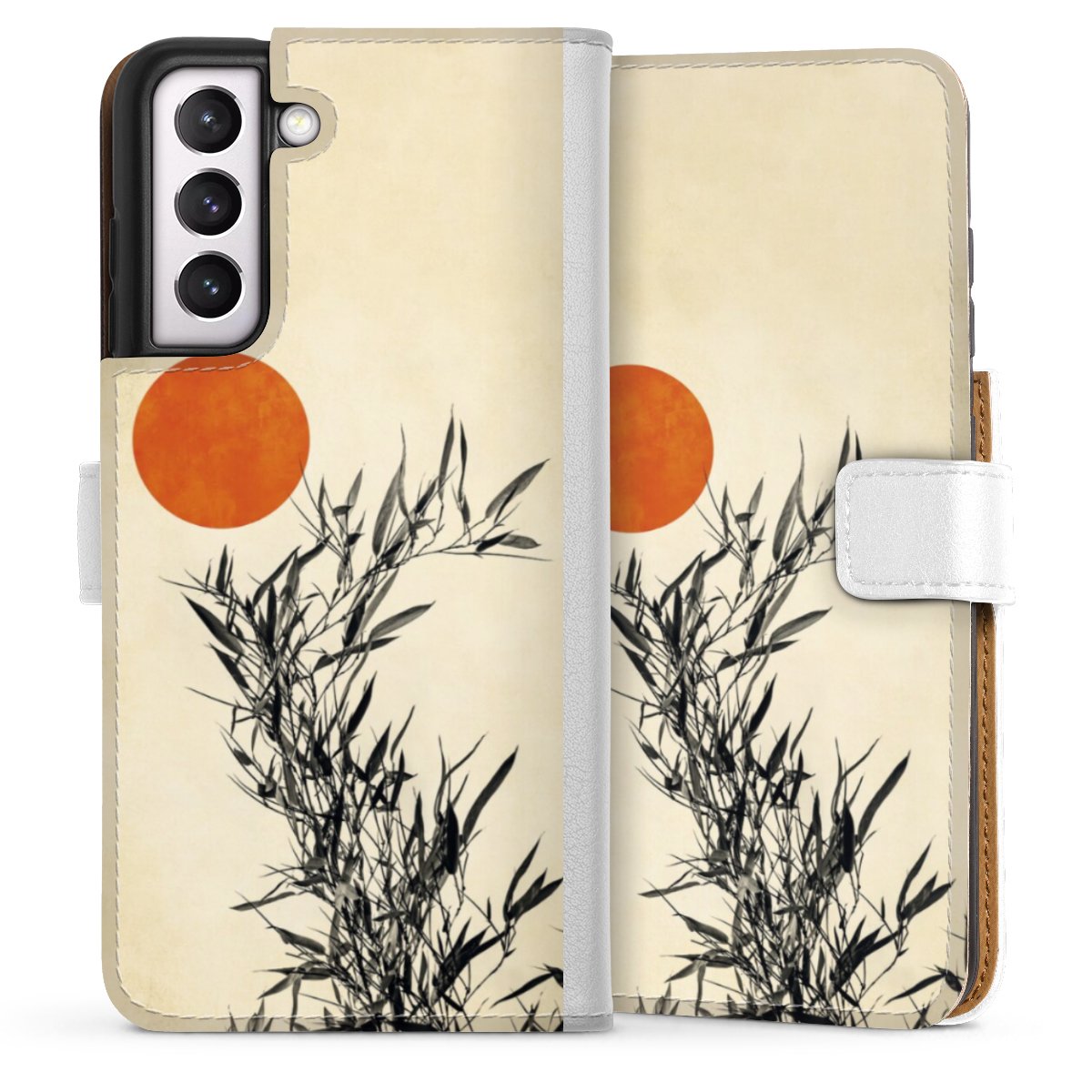 For our Sideflip Case we are using our advanced direct printing technology. The back and frontside are fully printabale, the inside of the phone bag is left unprinted. You can order the phone case without print, printed completely or also with a partial print.