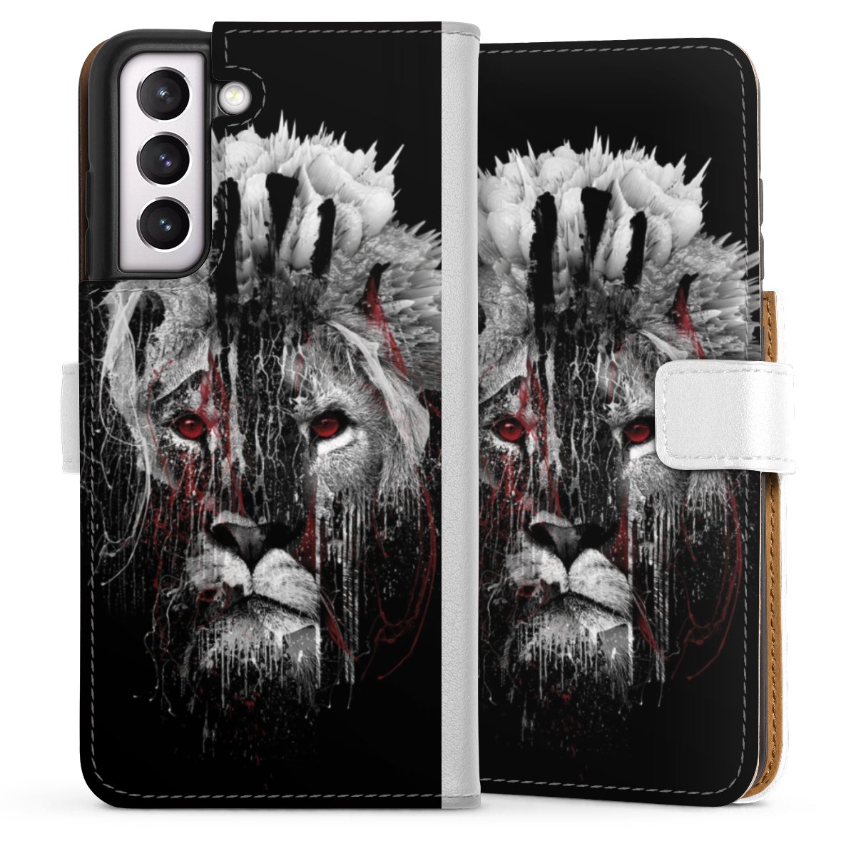 For our Sideflip Case we are using our advanced direct printing technology. The back and frontside are fully printabale, the inside of the phone bag is left unprinted. You can order the phone case without print, printed completely or also with a partial print.