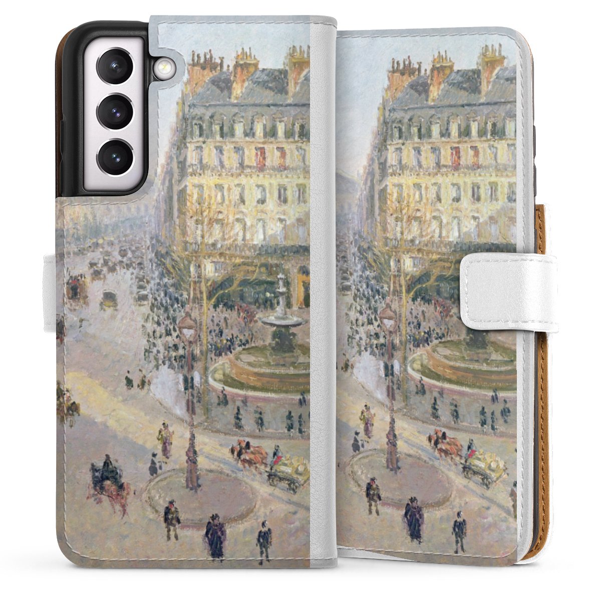 For our Sideflip Case we are using our advanced direct printing technology. The back and frontside are fully printabale, the inside of the phone bag is left unprinted. You can order the phone case without print, printed completely or also with a partial print.