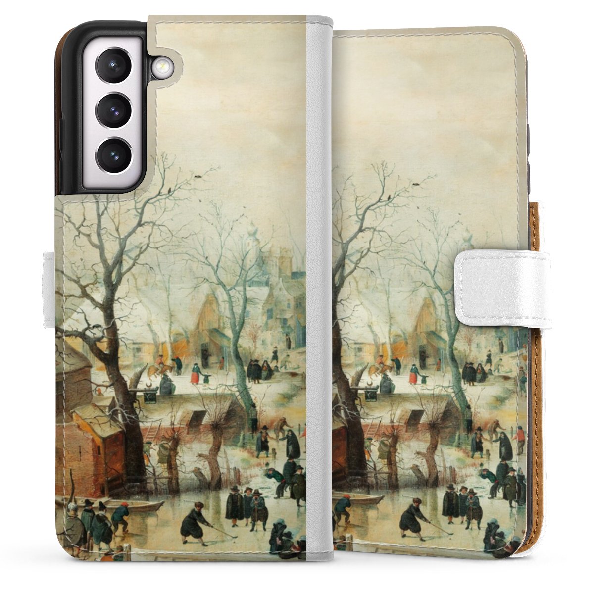 For our Sideflip Case we are using our advanced direct printing technology. The back and frontside are fully printabale, the inside of the phone bag is left unprinted. You can order the phone case without print, printed completely or also with a partial print.