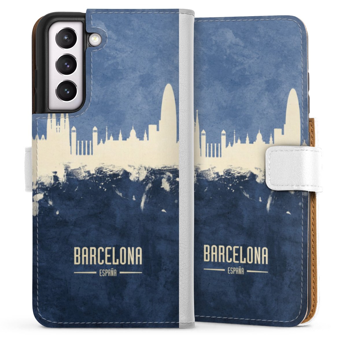 For our Sideflip Case we are using our advanced direct printing technology. The back and frontside are fully printabale, the inside of the phone bag is left unprinted. You can order the phone case without print, printed completely or also with a partial print.