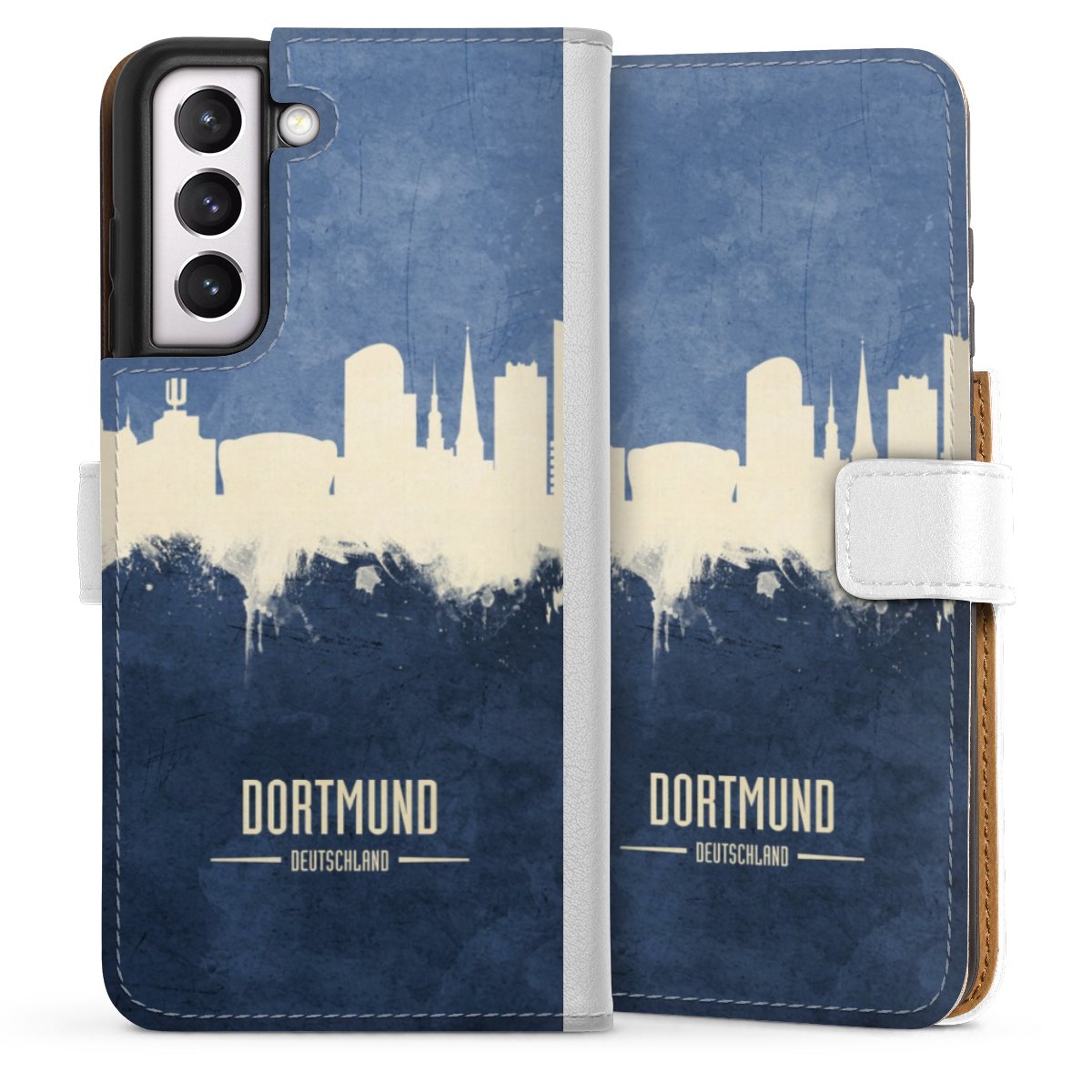 For our Sideflip Case we are using our advanced direct printing technology. The back and frontside are fully printabale, the inside of the phone bag is left unprinted. You can order the phone case without print, printed completely or also with a partial print.