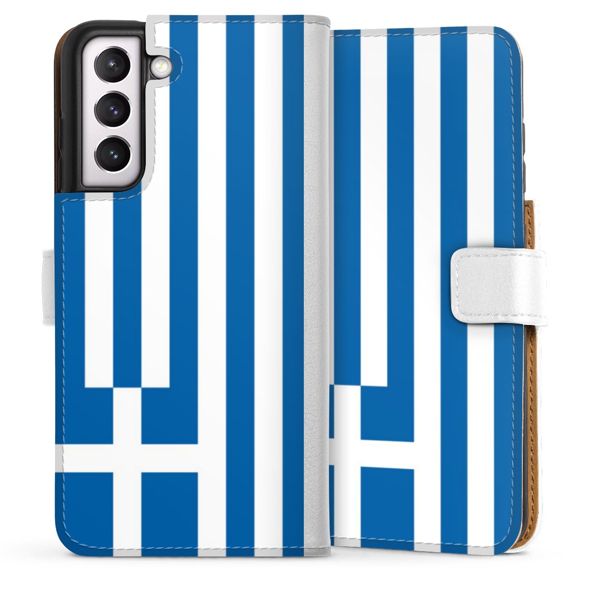 For our Sideflip Case we are using our advanced direct printing technology. The back and frontside are fully printabale, the inside of the phone bag is left unprinted. You can order the phone case without print, printed completely or also with a partial print.