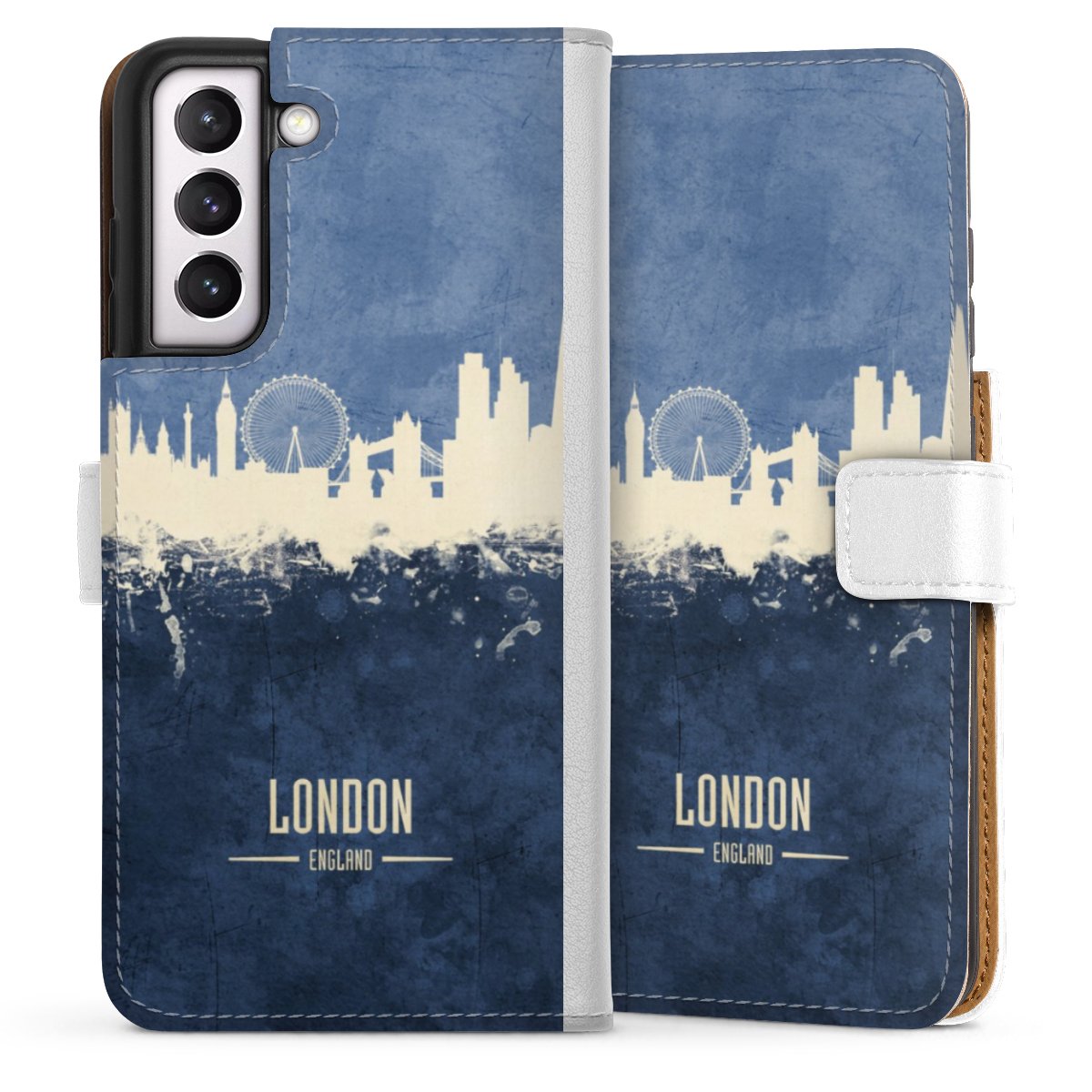 For our Sideflip Case we are using our advanced direct printing technology. The back and frontside are fully printabale, the inside of the phone bag is left unprinted. You can order the phone case without print, printed completely or also with a partial print.