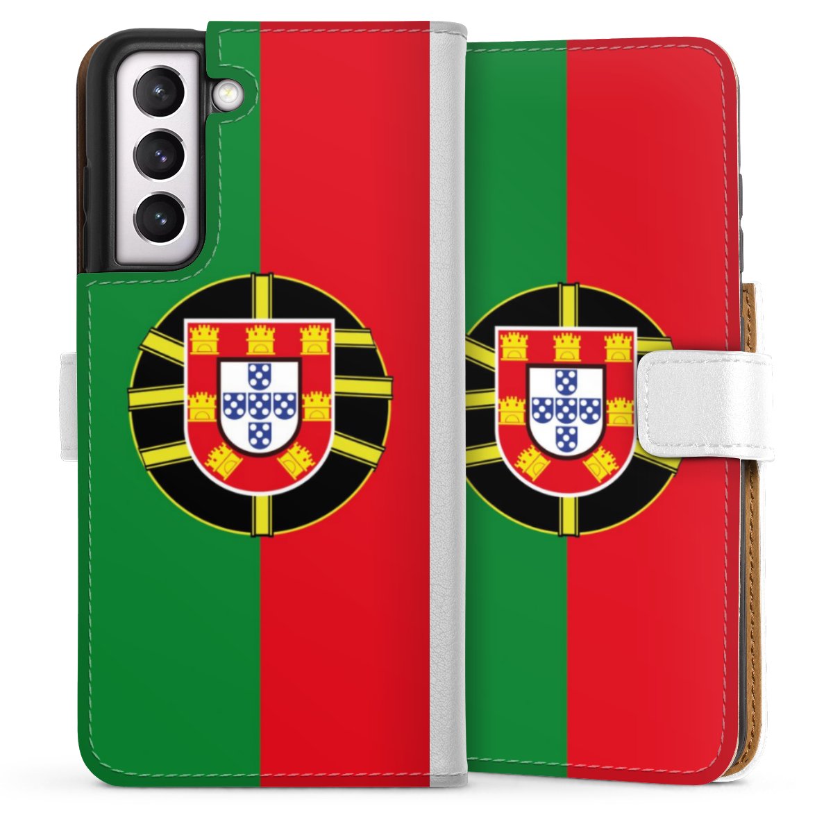 For our Sideflip Case we are using our advanced direct printing technology. The back and frontside are fully printabale, the inside of the phone bag is left unprinted. You can order the phone case without print, printed completely or also with a partial print.