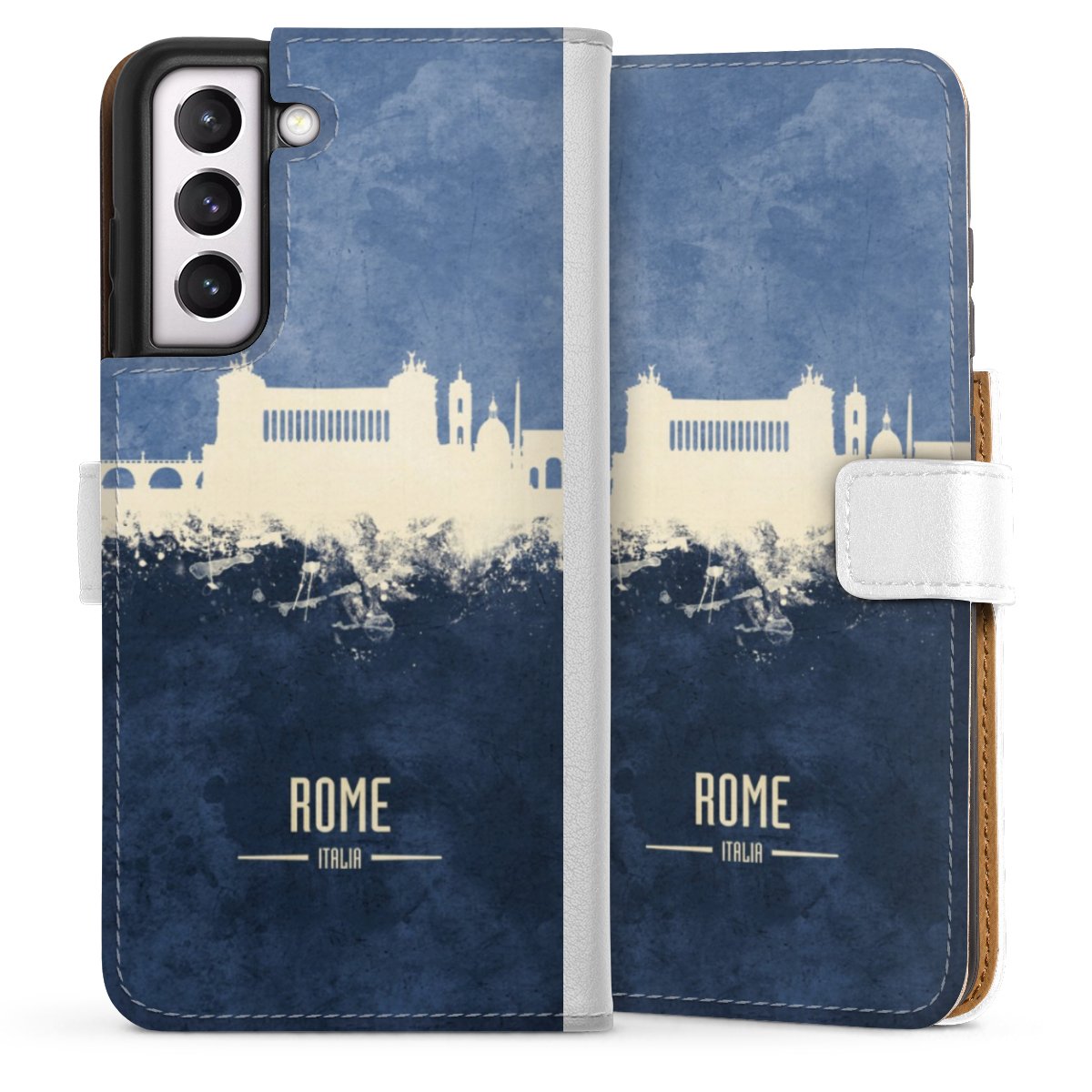 For our Sideflip Case we are using our advanced direct printing technology. The back and frontside are fully printabale, the inside of the phone bag is left unprinted. You can order the phone case without print, printed completely or also with a partial print.