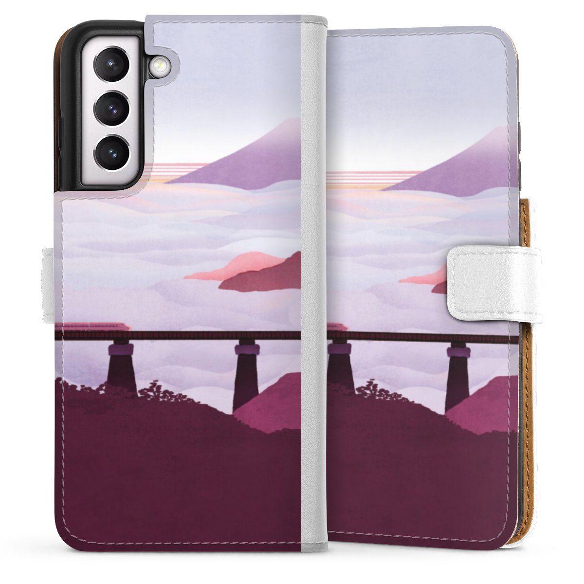 For our Sideflip Case we are using our advanced direct printing technology. The back and frontside are fully printabale, the inside of the phone bag is left unprinted. You can order the phone case without print, printed completely or also with a partial print.
