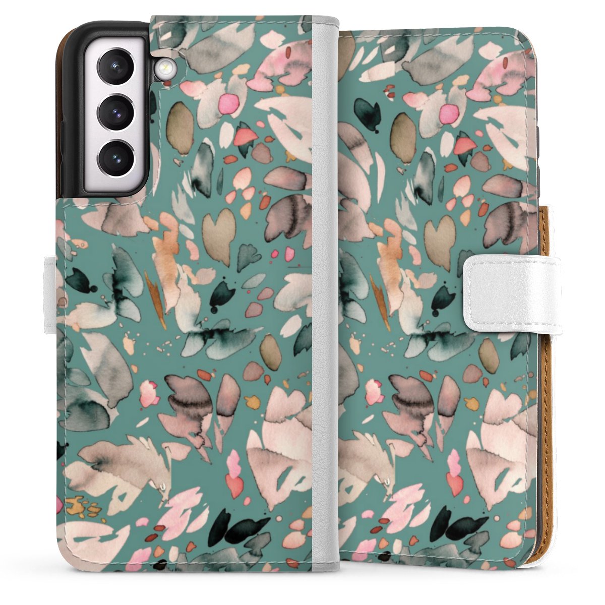 For our Sideflip Case we are using our advanced direct printing technology. The back and frontside are fully printabale, the inside of the phone bag is left unprinted. You can order the phone case without print, printed completely or also with a partial print.