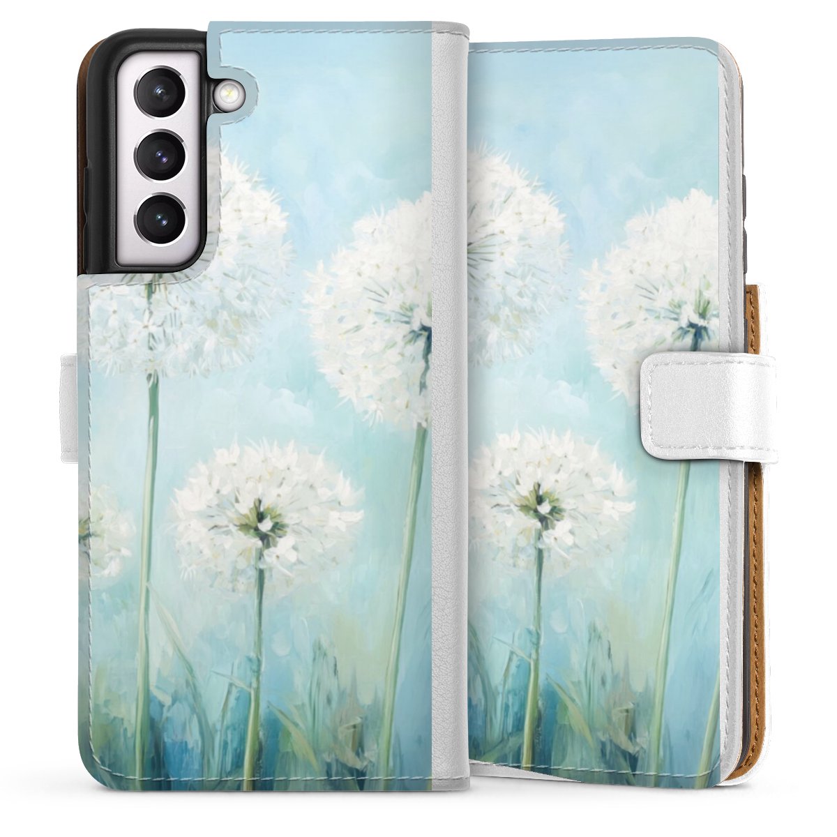 For our Sideflip Case we are using our advanced direct printing technology. The back and frontside are fully printabale, the inside of the phone bag is left unprinted. You can order the phone case without print, printed completely or also with a partial print.