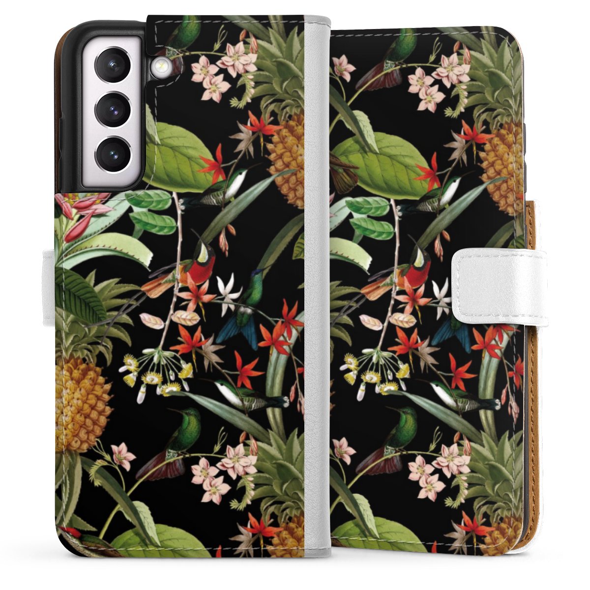 For our Sideflip Case we are using our advanced direct printing technology. The back and frontside are fully printabale, the inside of the phone bag is left unprinted. You can order the phone case without print, printed completely or also with a partial print.