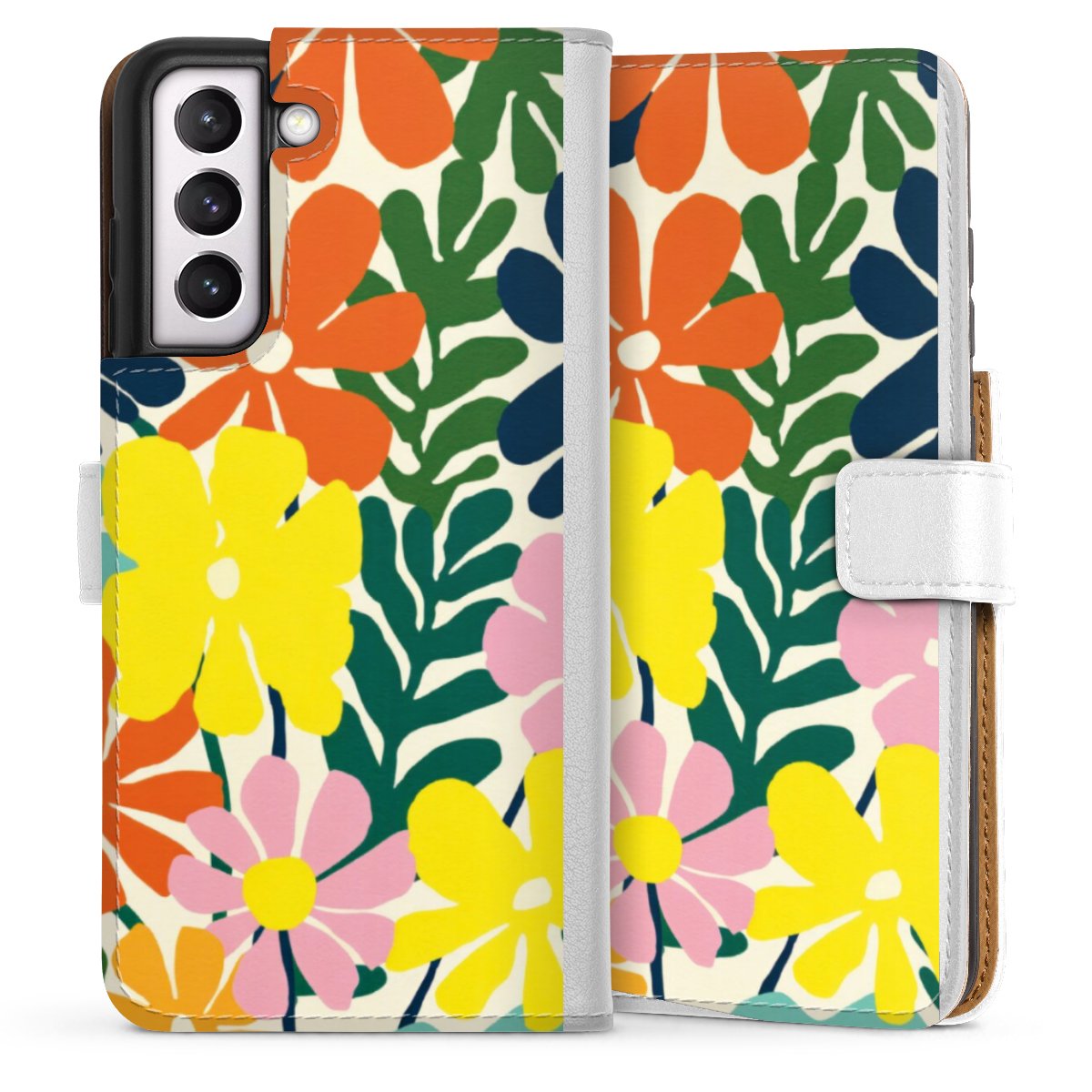 For our Sideflip Case we are using our advanced direct printing technology. The back and frontside are fully printabale, the inside of the phone bag is left unprinted. You can order the phone case without print, printed completely or also with a partial print.