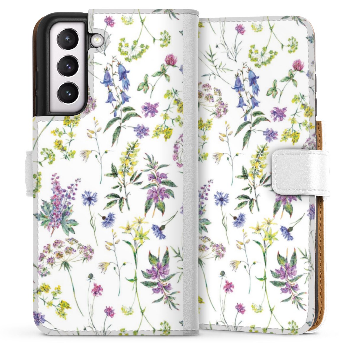 For our Sideflip Case we are using our advanced direct printing technology. The back and frontside are fully printabale, the inside of the phone bag is left unprinted. You can order the phone case without print, printed completely or also with a partial print.