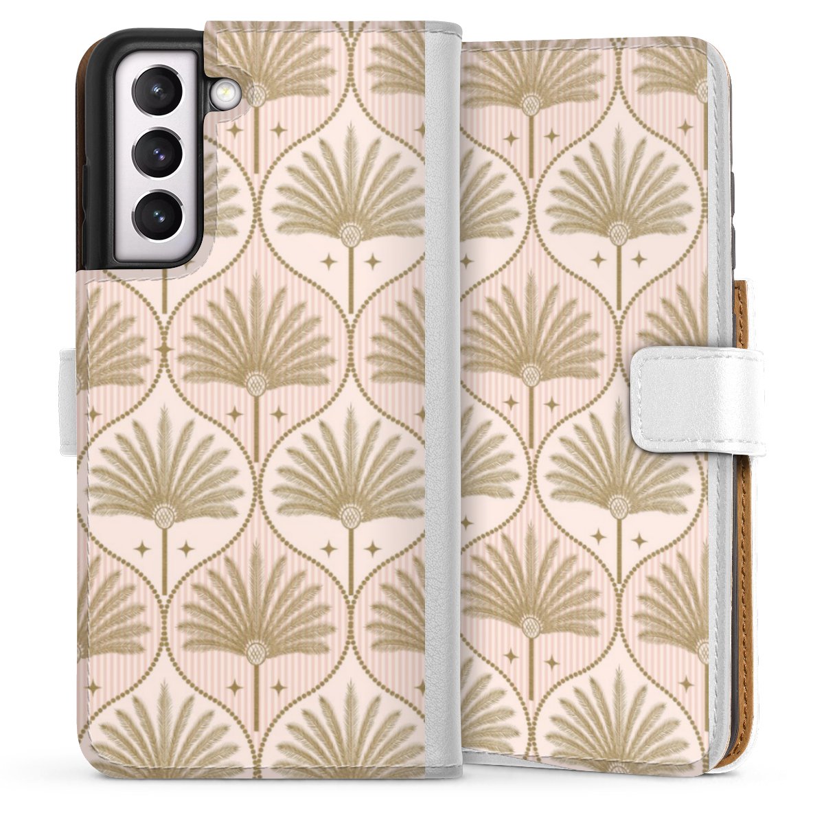 For our Sideflip Case we are using our advanced direct printing technology. The back and frontside are fully printabale, the inside of the phone bag is left unprinted. You can order the phone case without print, printed completely or also with a partial print.