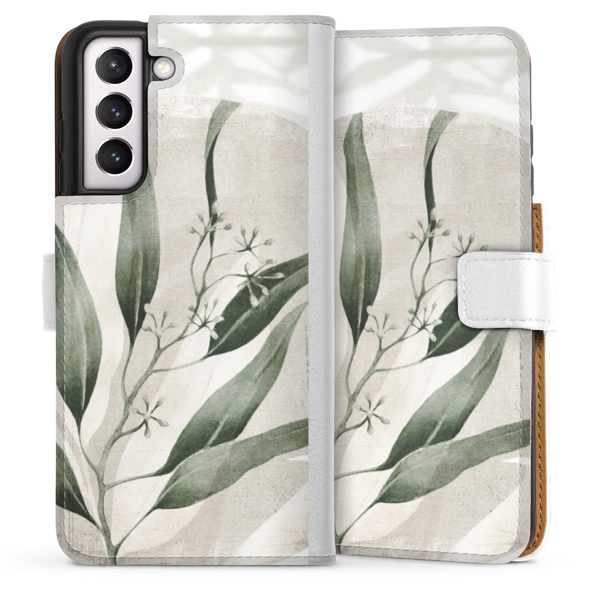 For our Sideflip Case we are using our advanced direct printing technology. The back and frontside are fully printabale, the inside of the phone bag is left unprinted. You can order the phone case without print, printed completely or also with a partial print.