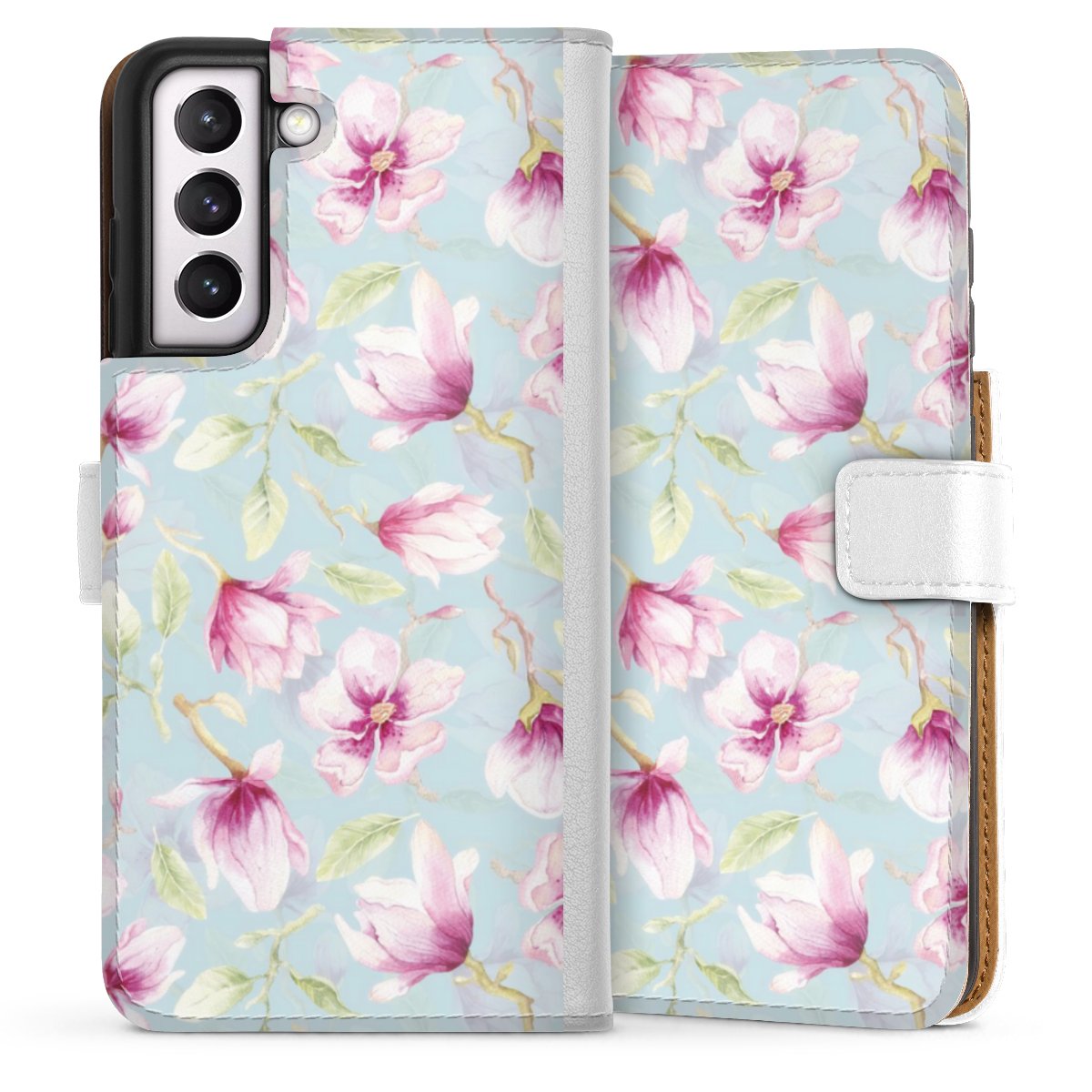 For our Sideflip Case we are using our advanced direct printing technology. The back and frontside are fully printabale, the inside of the phone bag is left unprinted. You can order the phone case without print, printed completely or also with a partial print.