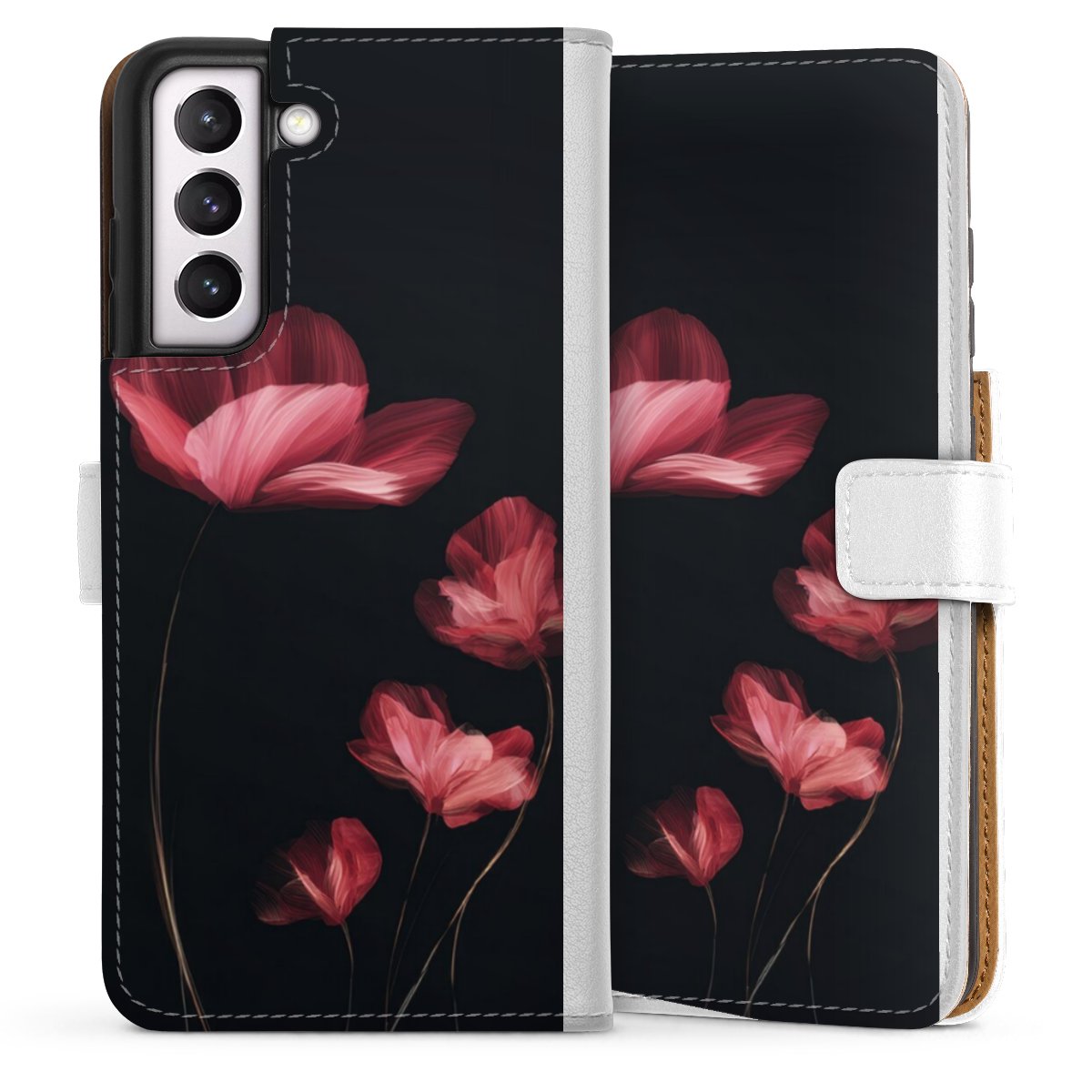 For our Sideflip Case we are using our advanced direct printing technology. The back and frontside are fully printabale, the inside of the phone bag is left unprinted. You can order the phone case without print, printed completely or also with a partial print.