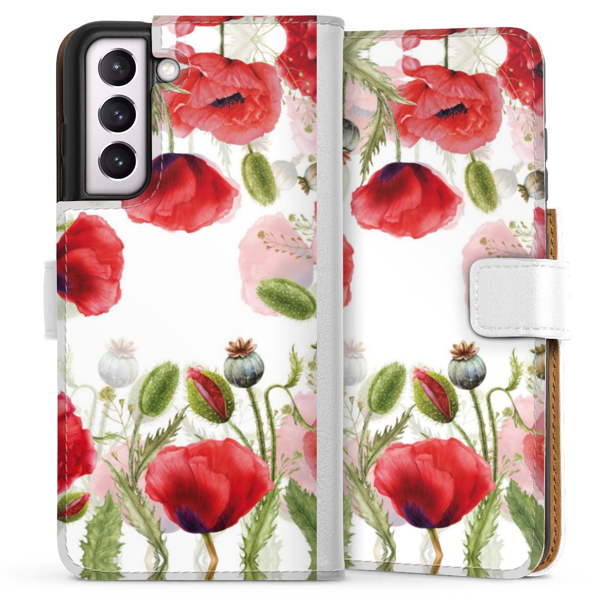 For our Sideflip Case we are using our advanced direct printing technology. The back and frontside are fully printabale, the inside of the phone bag is left unprinted. You can order the phone case without print, printed completely or also with a partial print.