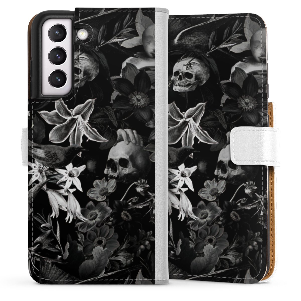 For our Sideflip Case we are using our advanced direct printing technology. The back and frontside are fully printabale, the inside of the phone bag is left unprinted. You can order the phone case without print, printed completely or also with a partial print.