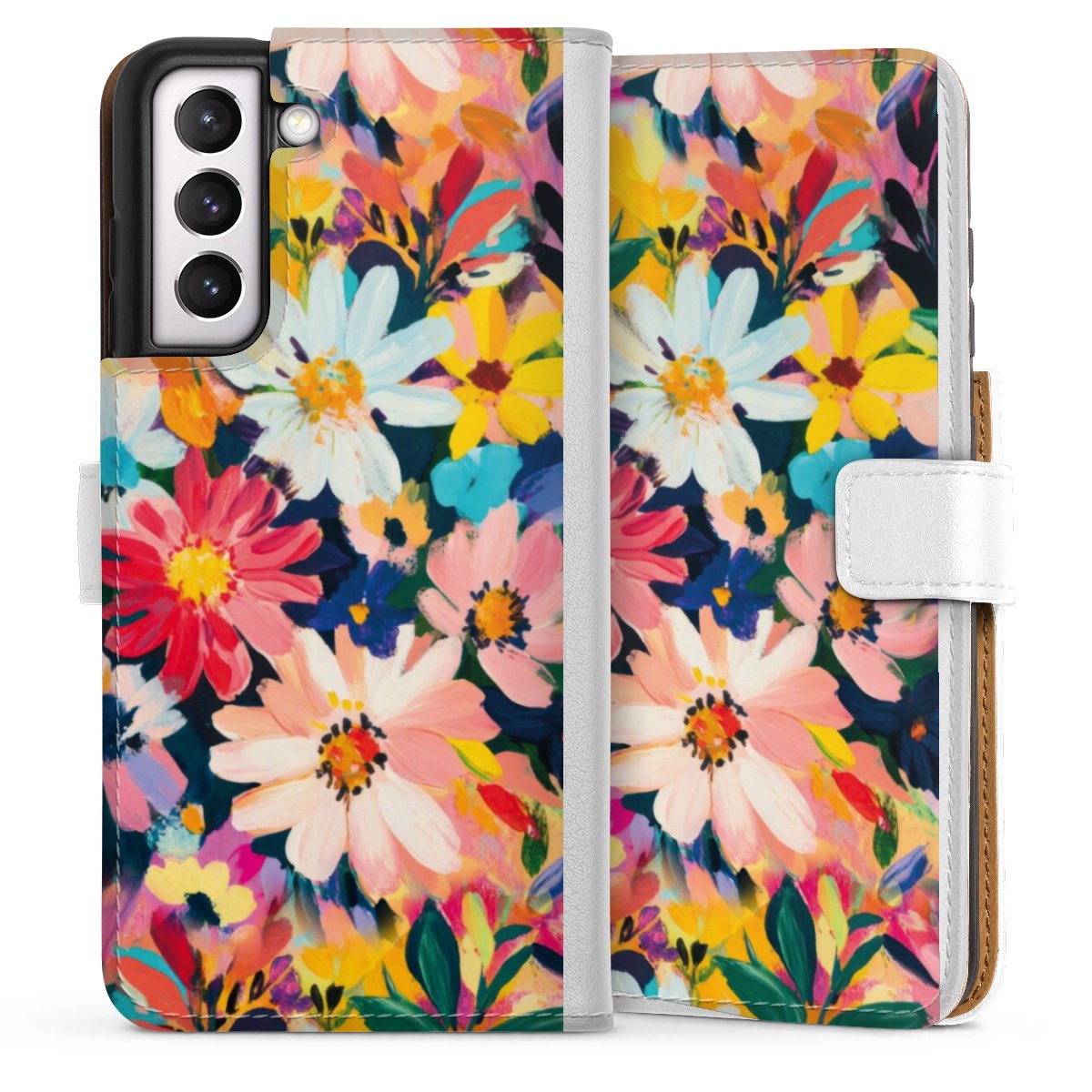 For our Sideflip Case we are using our advanced direct printing technology. The back and frontside are fully printabale, the inside of the phone bag is left unprinted. You can order the phone case without print, printed completely or also with a partial print.