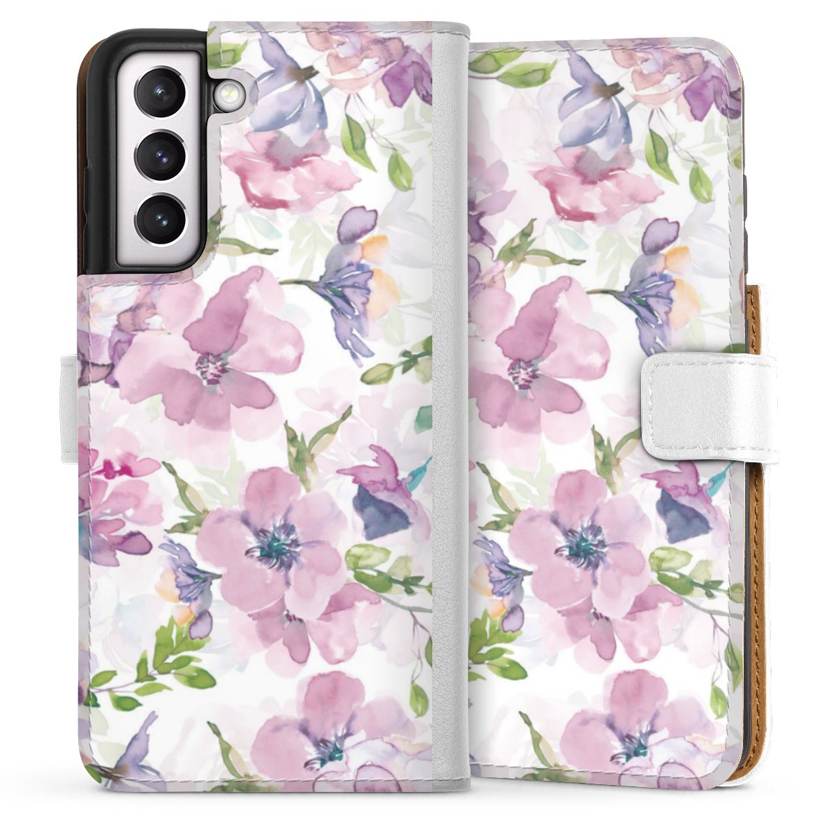 For our Sideflip Case we are using our advanced direct printing technology. The back and frontside are fully printabale, the inside of the phone bag is left unprinted. You can order the phone case without print, printed completely or also with a partial print.