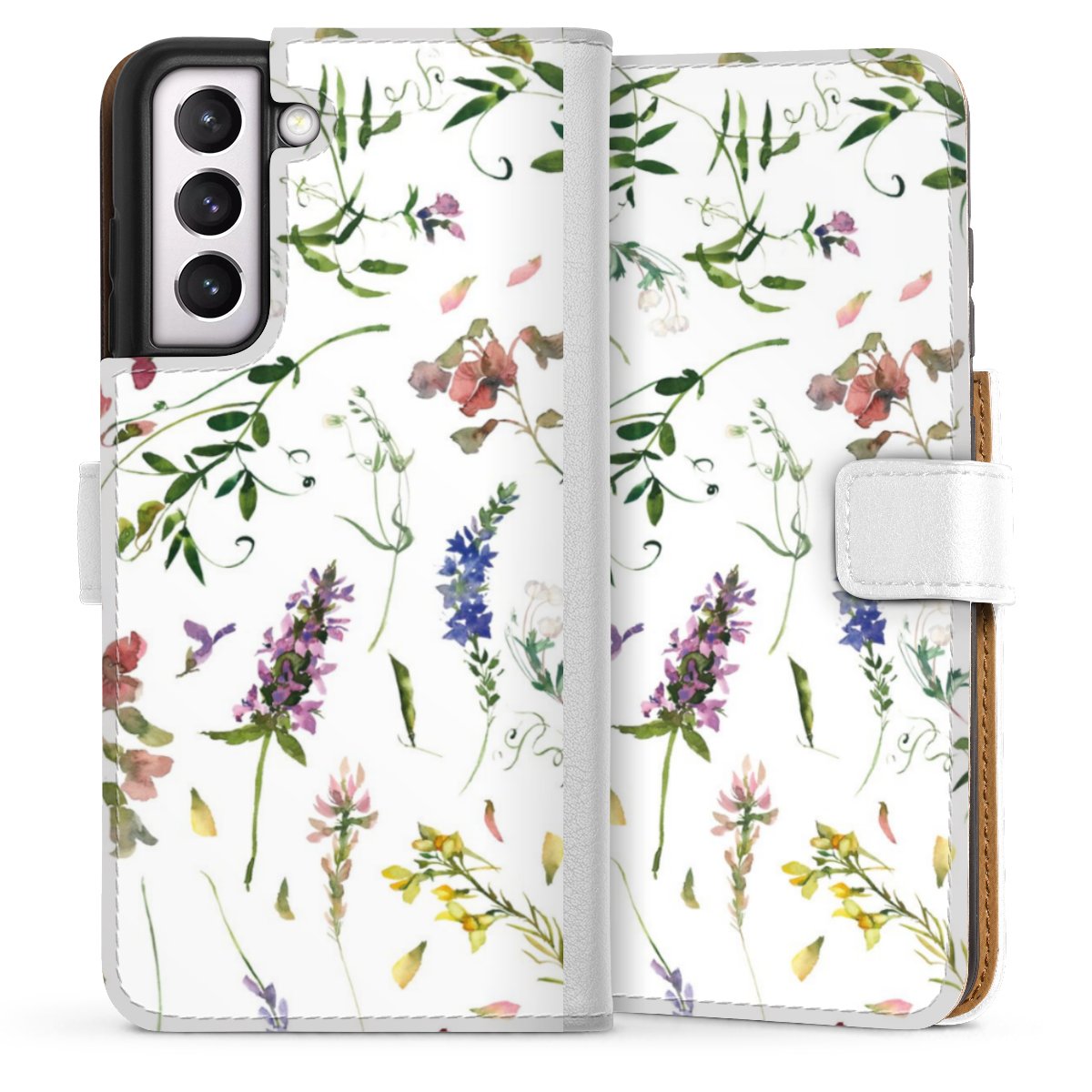 For our Sideflip Case we are using our advanced direct printing technology. The back and frontside are fully printabale, the inside of the phone bag is left unprinted. You can order the phone case without print, printed completely or also with a partial print.