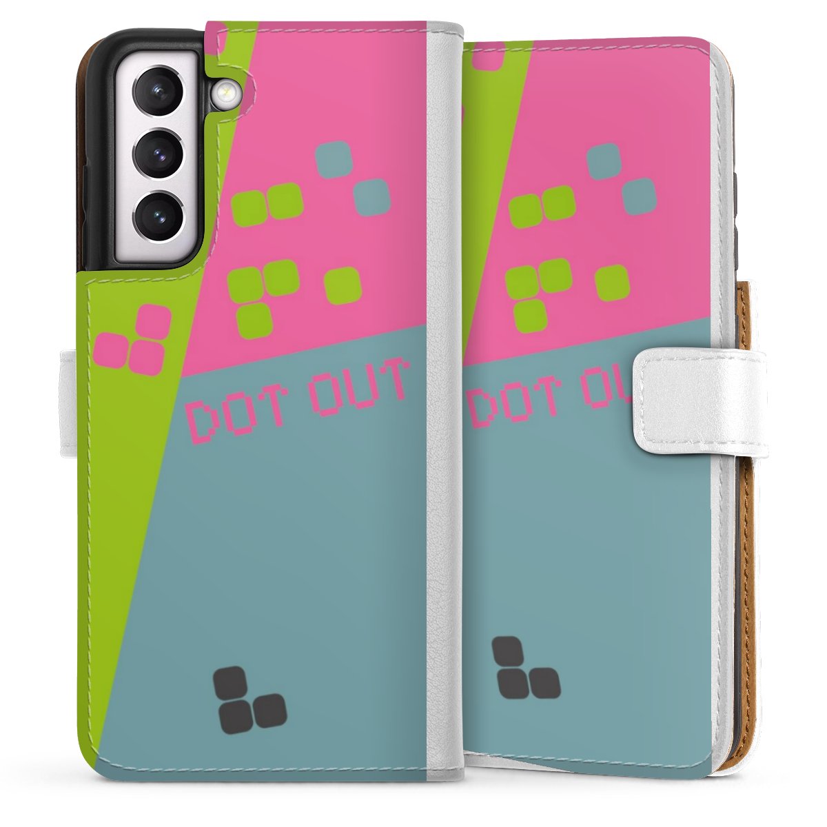For our Sideflip Case we are using our advanced direct printing technology. The back and frontside are fully printabale, the inside of the phone bag is left unprinted. You can order the phone case without print, printed completely or also with a partial print.