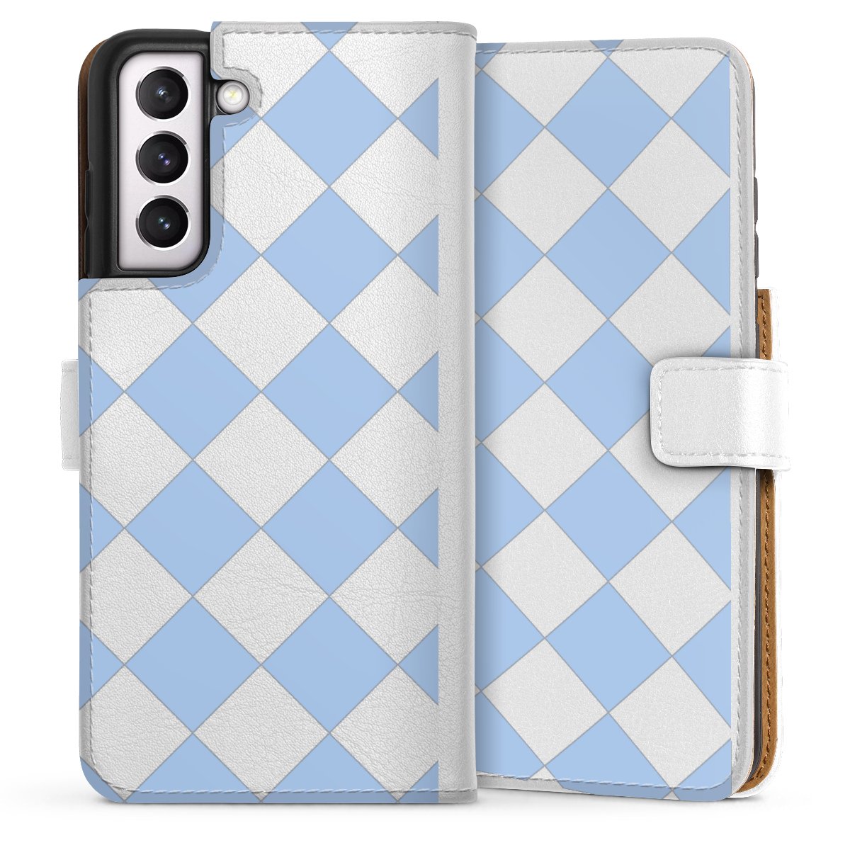 For our Sideflip Case we are using our advanced direct printing technology. The back and frontside are fully printabale, the inside of the phone bag is left unprinted. You can order the phone case without print, printed completely or also with a partial print.