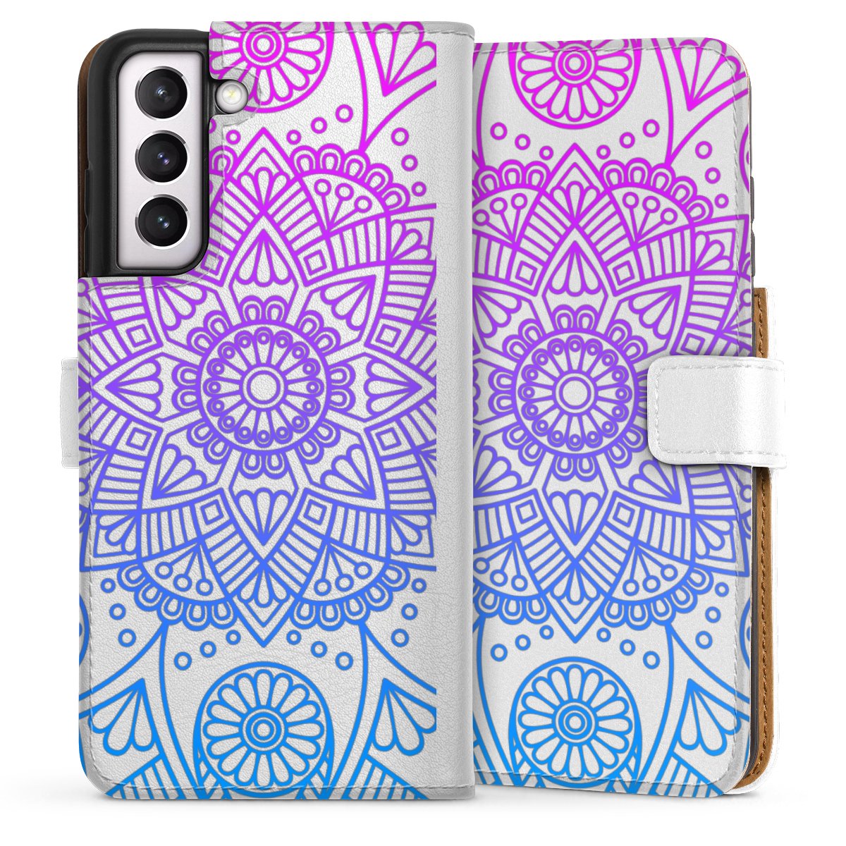 For our Sideflip Case we are using our advanced direct printing technology. The back and frontside are fully printabale, the inside of the phone bag is left unprinted. You can order the phone case without print, printed completely or also with a partial print.