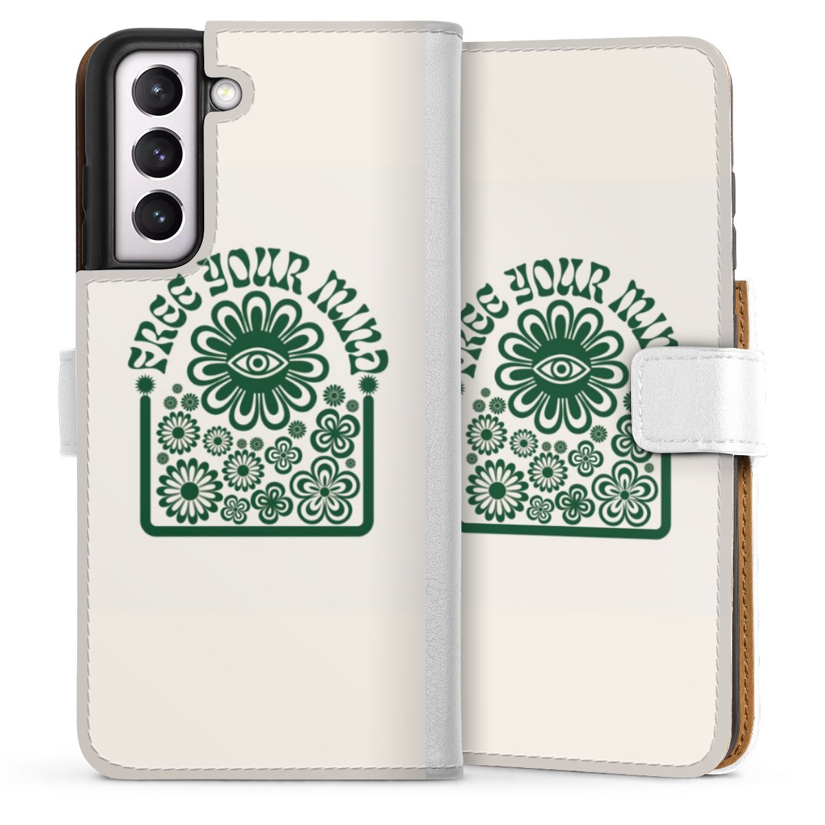 For our Sideflip Case we are using our advanced direct printing technology. The back and frontside are fully printabale, the inside of the phone bag is left unprinted. You can order the phone case without print, printed completely or also with a partial print.