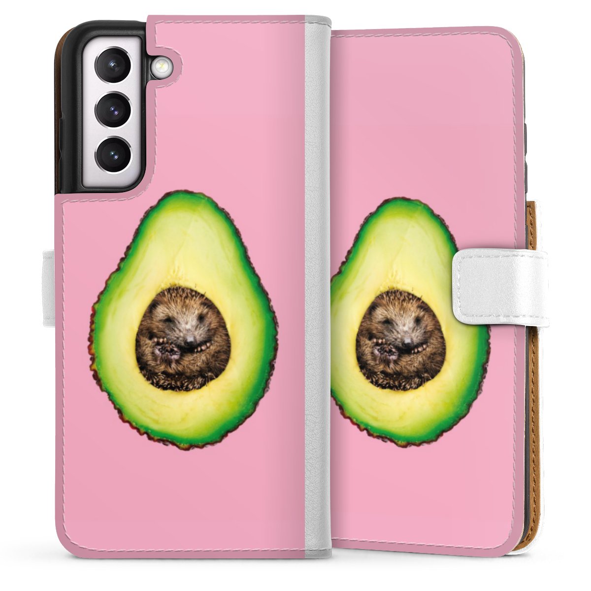 For our Sideflip Case we are using our advanced direct printing technology. The back and frontside are fully printabale, the inside of the phone bag is left unprinted. You can order the phone case without print, printed completely or also with a partial print.
