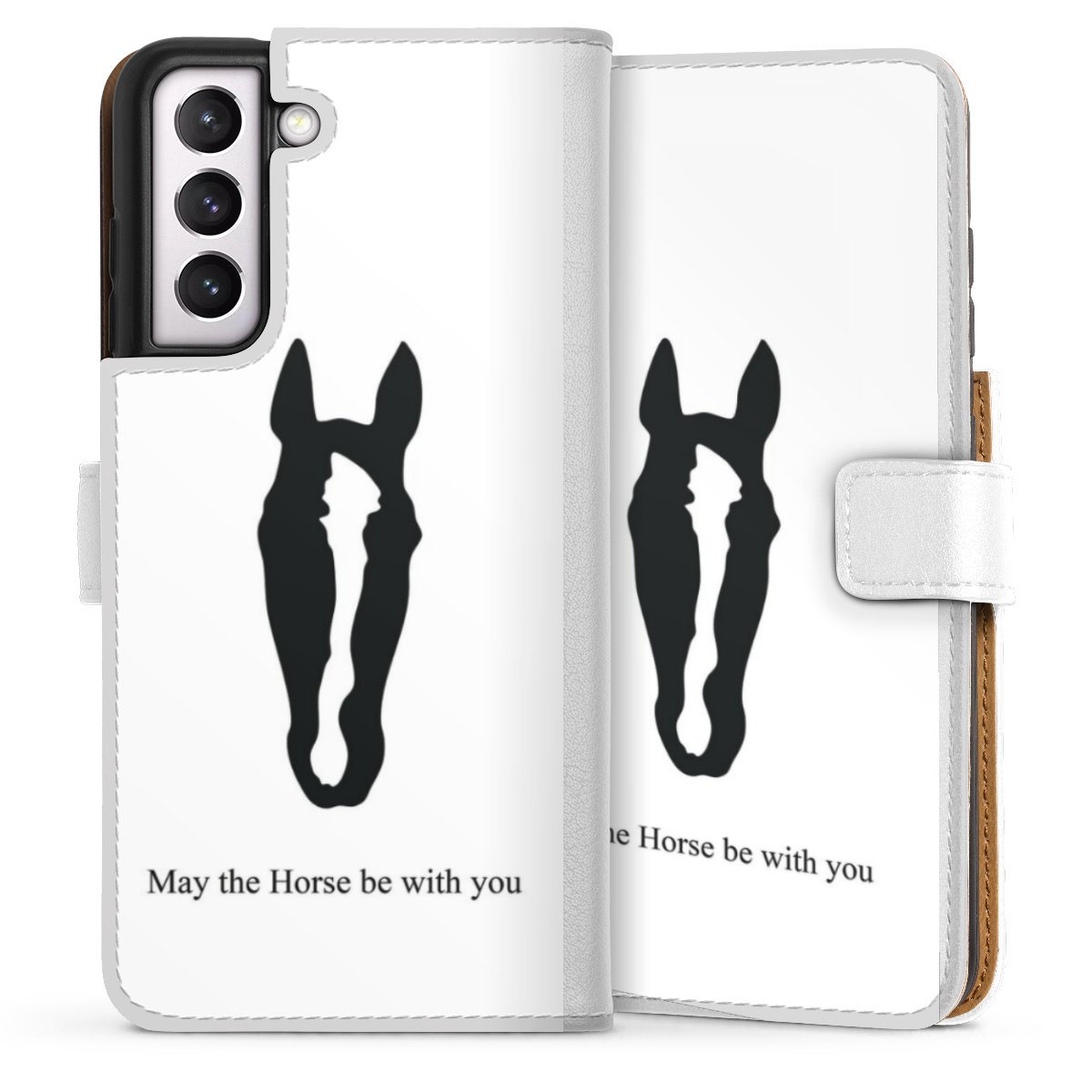 For our Sideflip Case we are using our advanced direct printing technology. The back and frontside are fully printabale, the inside of the phone bag is left unprinted. You can order the phone case without print, printed completely or also with a partial print.