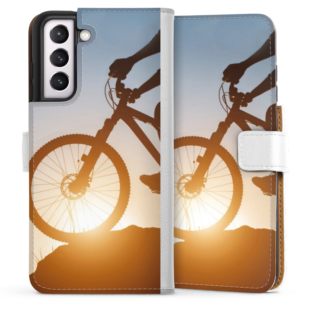 For our Sideflip Case we are using our advanced direct printing technology. The back and frontside are fully printabale, the inside of the phone bag is left unprinted. You can order the phone case without print, printed completely or also with a partial print.