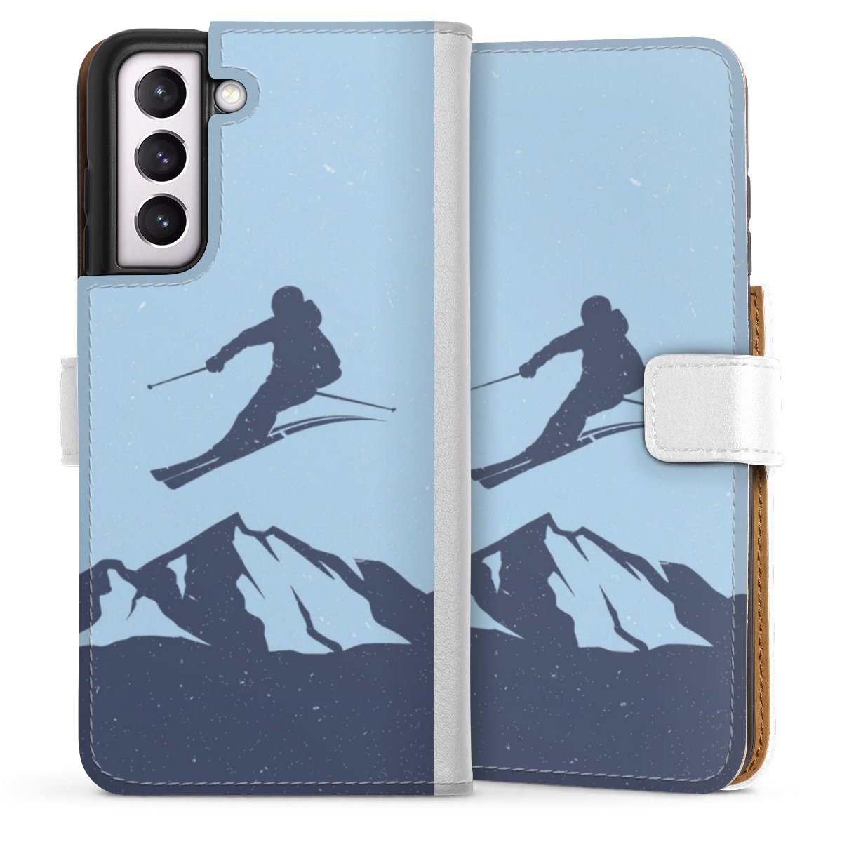 For our Sideflip Case we are using our advanced direct printing technology. The back and frontside are fully printabale, the inside of the phone bag is left unprinted. You can order the phone case without print, printed completely or also with a partial print.