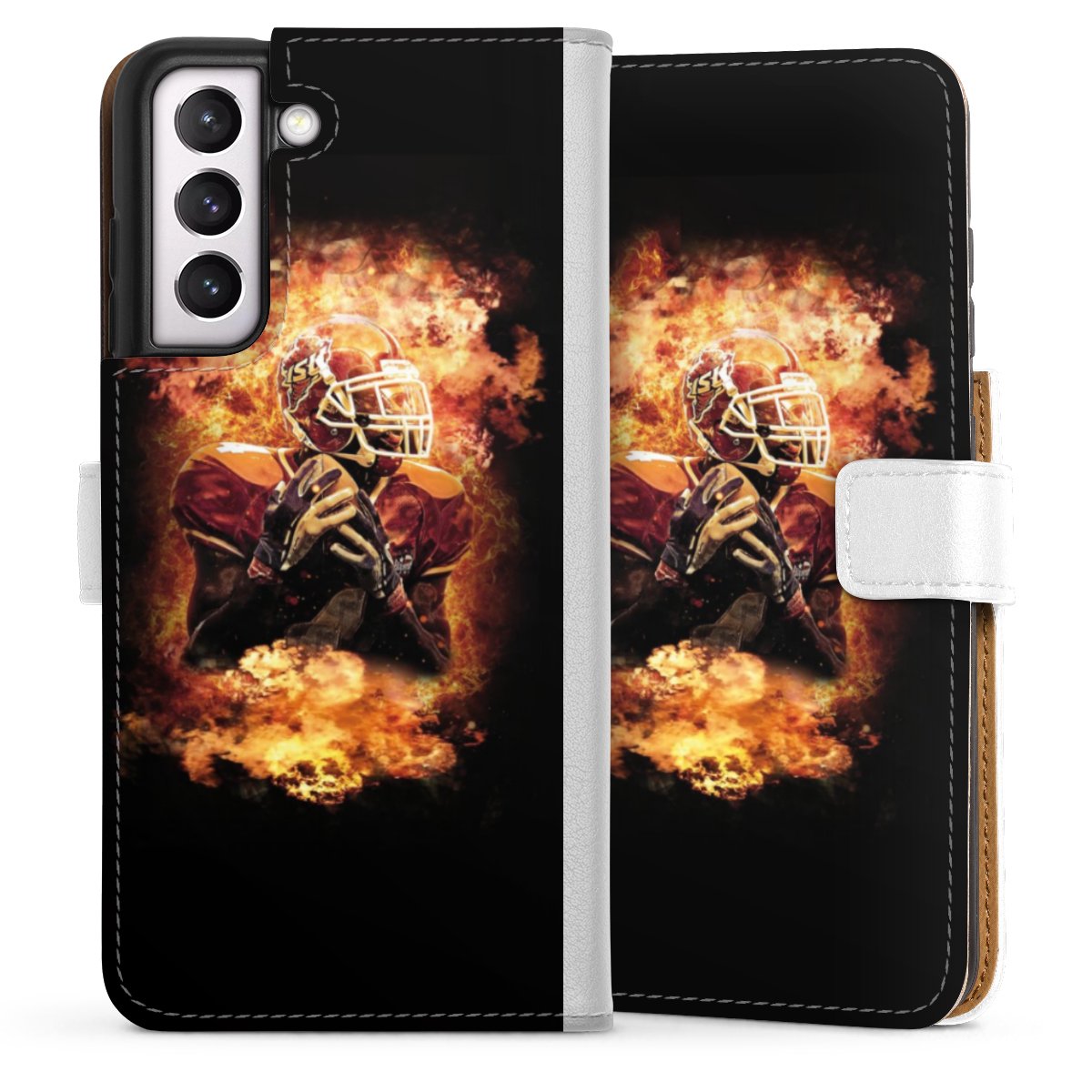 For our Sideflip Case we are using our advanced direct printing technology. The back and frontside are fully printabale, the inside of the phone bag is left unprinted. You can order the phone case without print, printed completely or also with a partial print.