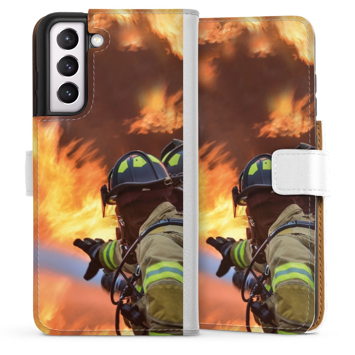 For our Sideflip Case we are using our advanced direct printing technology. The back and frontside are fully printabale, the inside of the phone bag is left unprinted. You can order the phone case without print, printed completely or also with a partial print.