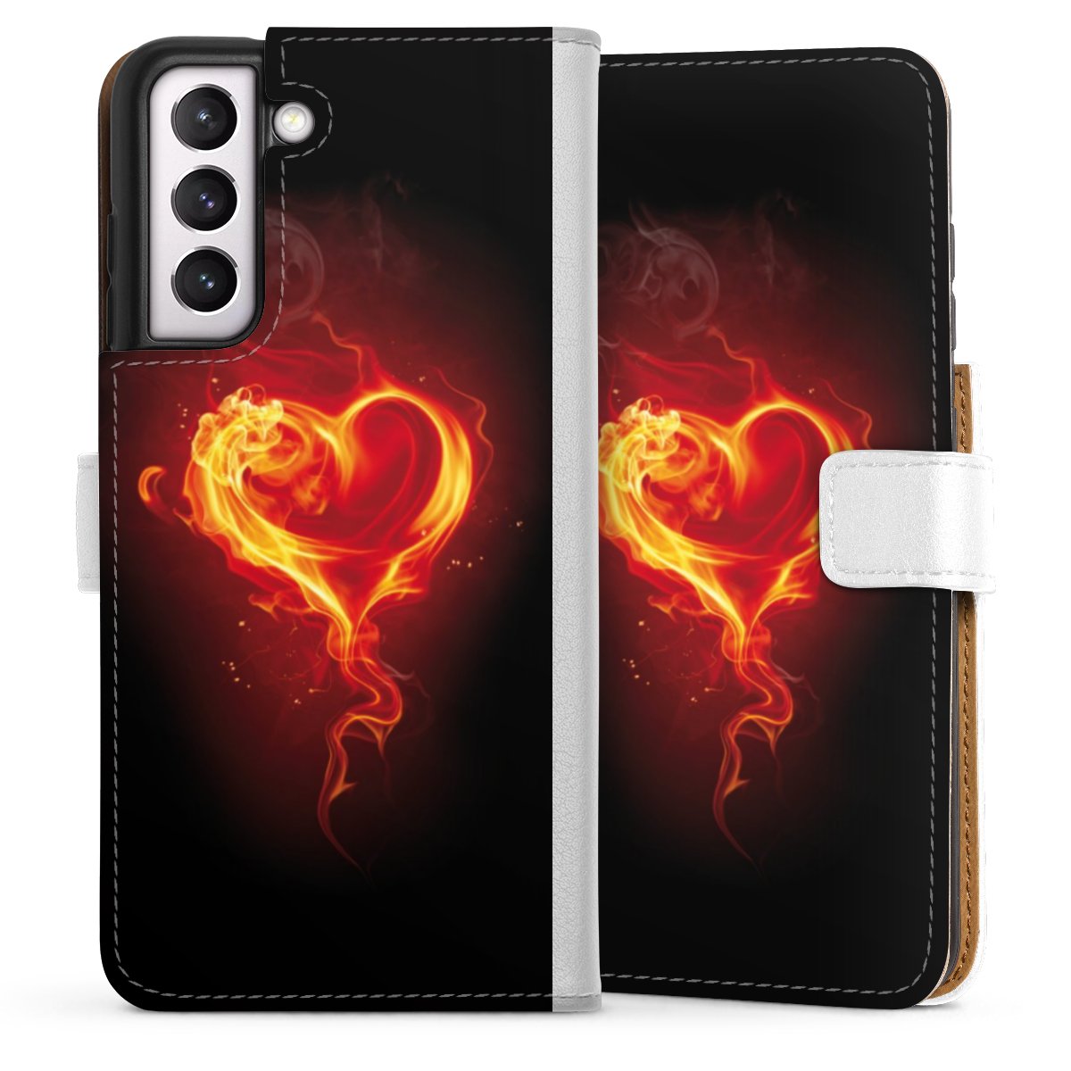 For our Sideflip Case we are using our advanced direct printing technology. The back and frontside are fully printabale, the inside of the phone bag is left unprinted. You can order the phone case without print, printed completely or also with a partial print.