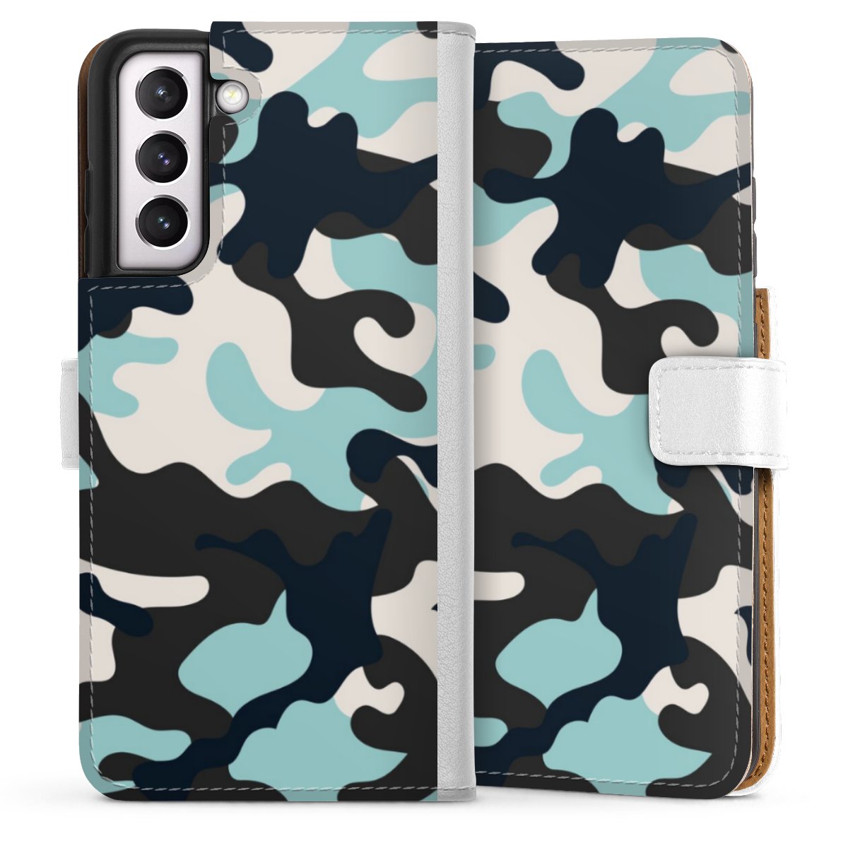 For our Sideflip Case we are using our advanced direct printing technology. The back and frontside are fully printabale, the inside of the phone bag is left unprinted. You can order the phone case without print, printed completely or also with a partial print.