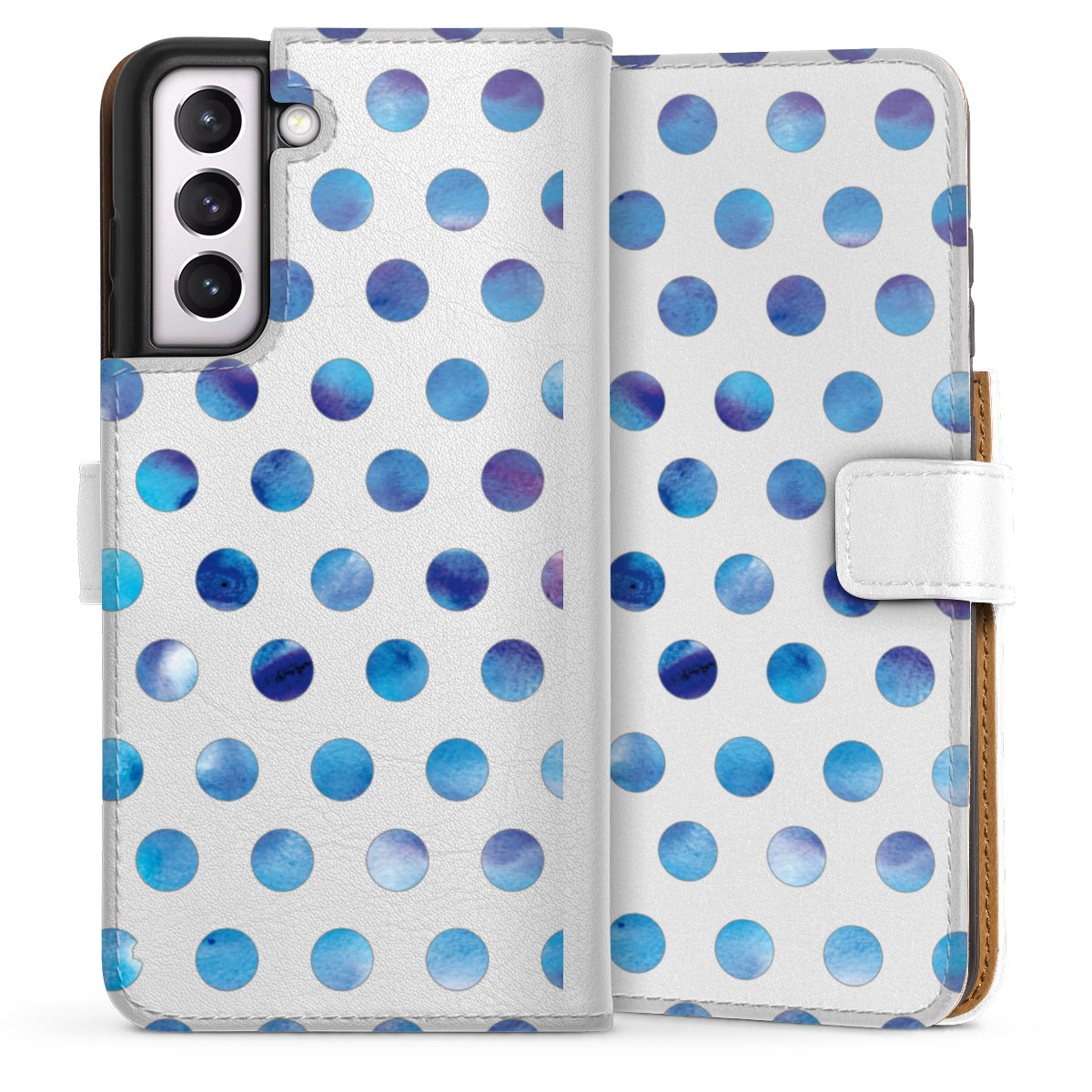 For our Sideflip Case we are using our advanced direct printing technology. The back and frontside are fully printabale, the inside of the phone bag is left unprinted. You can order the phone case without print, printed completely or also with a partial print.