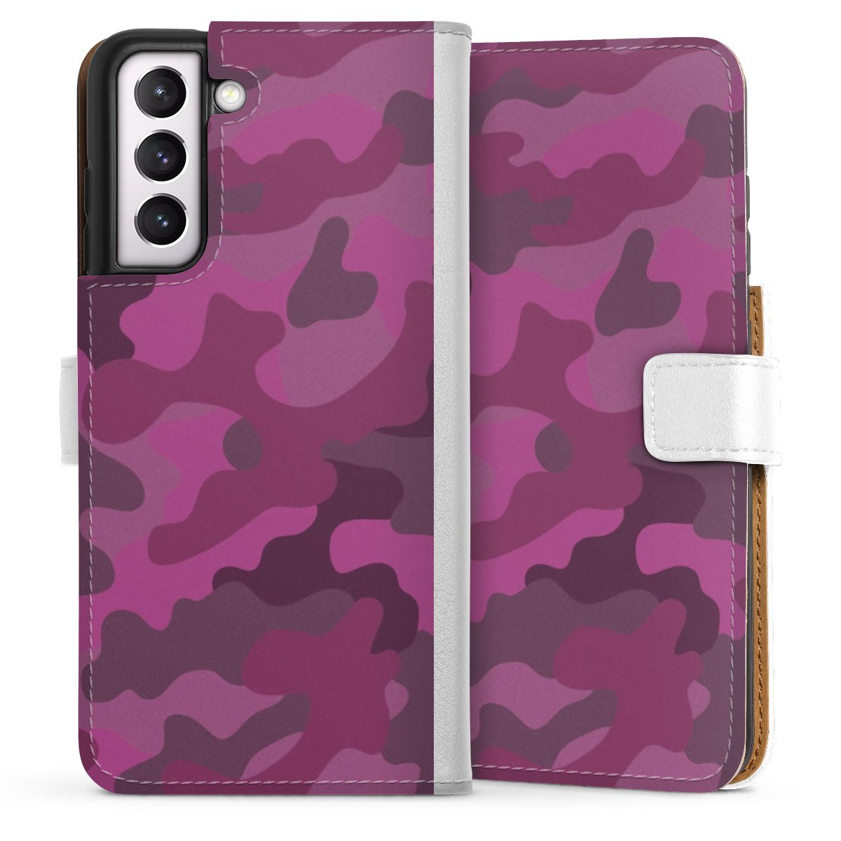 For our Sideflip Case we are using our advanced direct printing technology. The back and frontside are fully printabale, the inside of the phone bag is left unprinted. You can order the phone case without print, printed completely or also with a partial print.