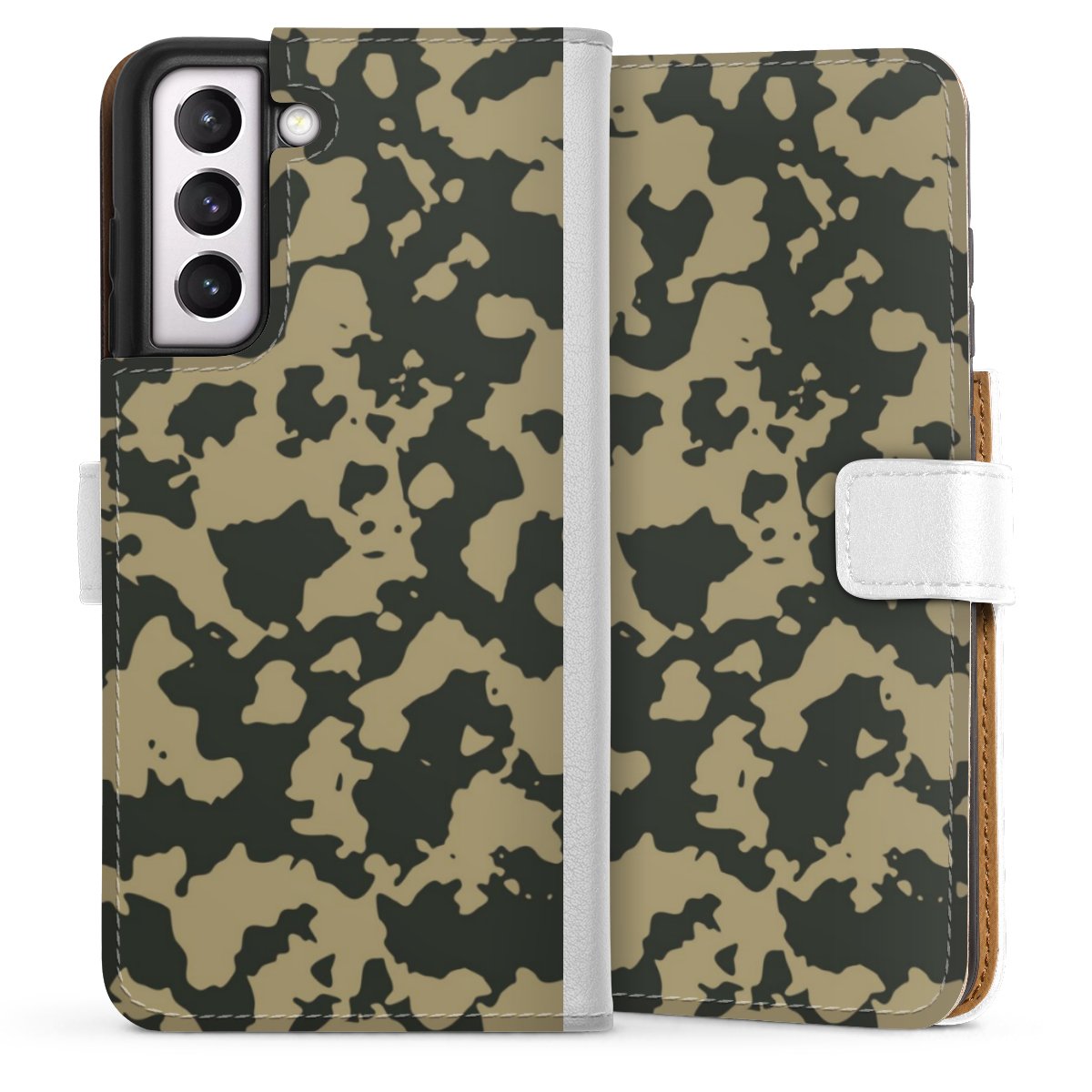 For our Sideflip Case we are using our advanced direct printing technology. The back and frontside are fully printabale, the inside of the phone bag is left unprinted. You can order the phone case without print, printed completely or also with a partial print.
