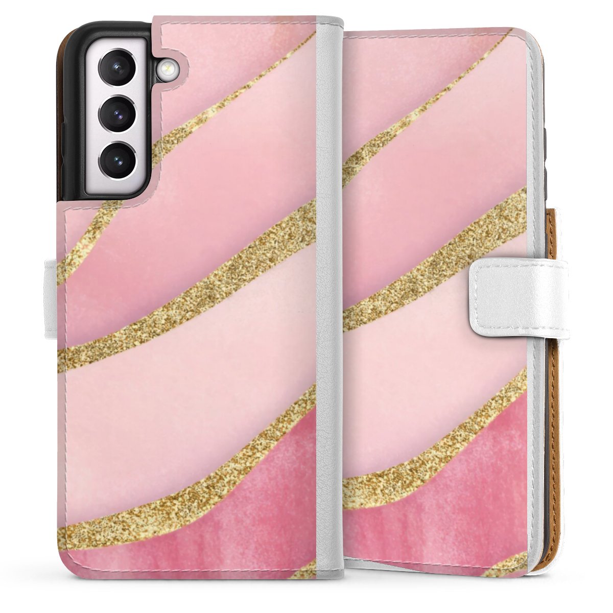 For our Sideflip Case we are using our advanced direct printing technology. The back and frontside are fully printabale, the inside of the phone bag is left unprinted. You can order the phone case without print, printed completely or also with a partial print.