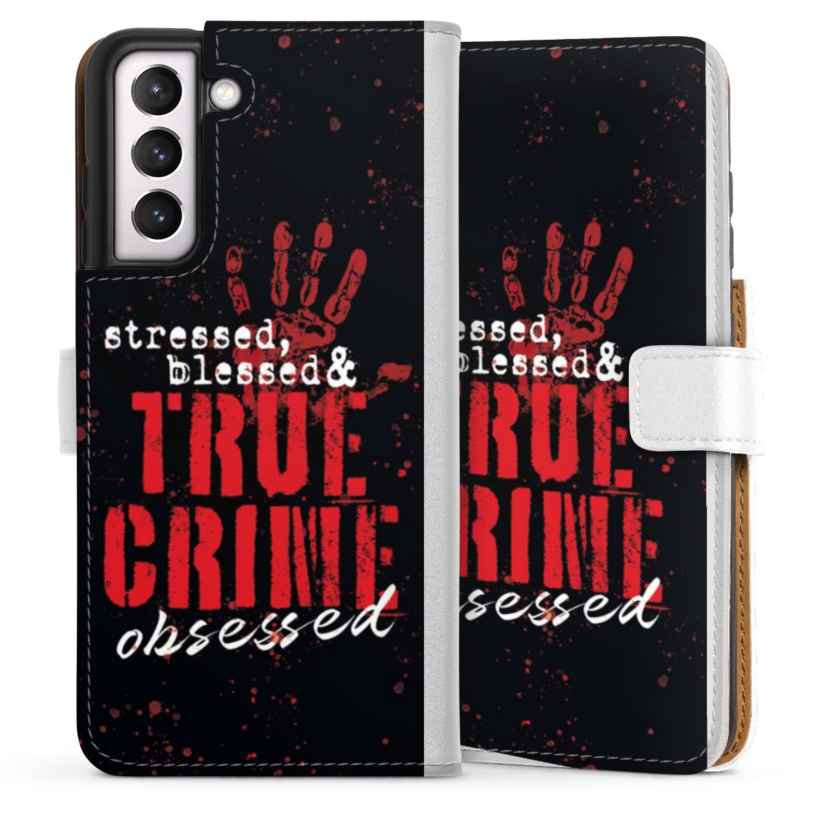 For our Sideflip Case we are using our advanced direct printing technology. The back and frontside are fully printabale, the inside of the phone bag is left unprinted. You can order the phone case without print, printed completely or also with a partial print.