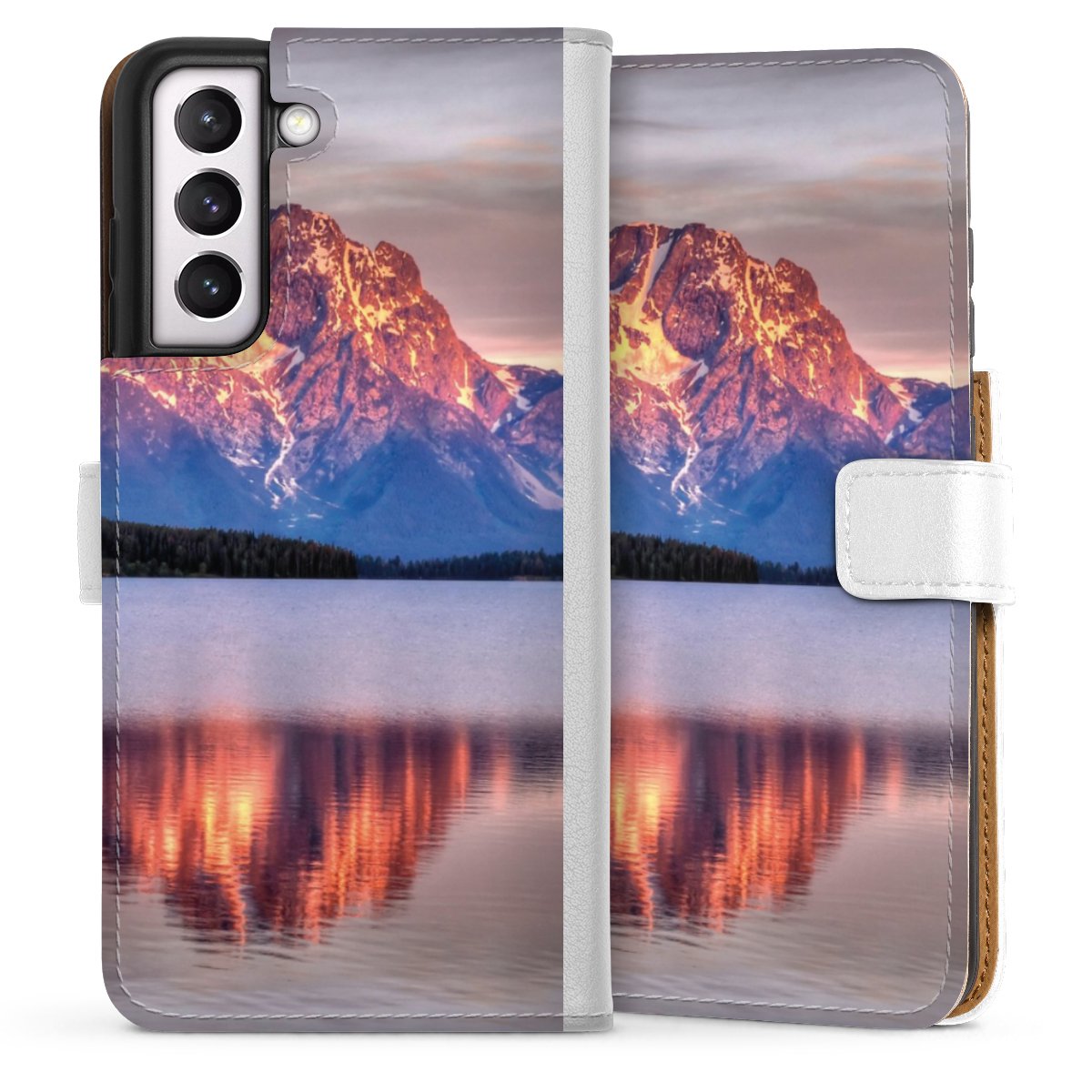 For our Sideflip Case we are using our advanced direct printing technology. The back and frontside are fully printabale, the inside of the phone bag is left unprinted. You can order the phone case without print, printed completely or also with a partial print.
