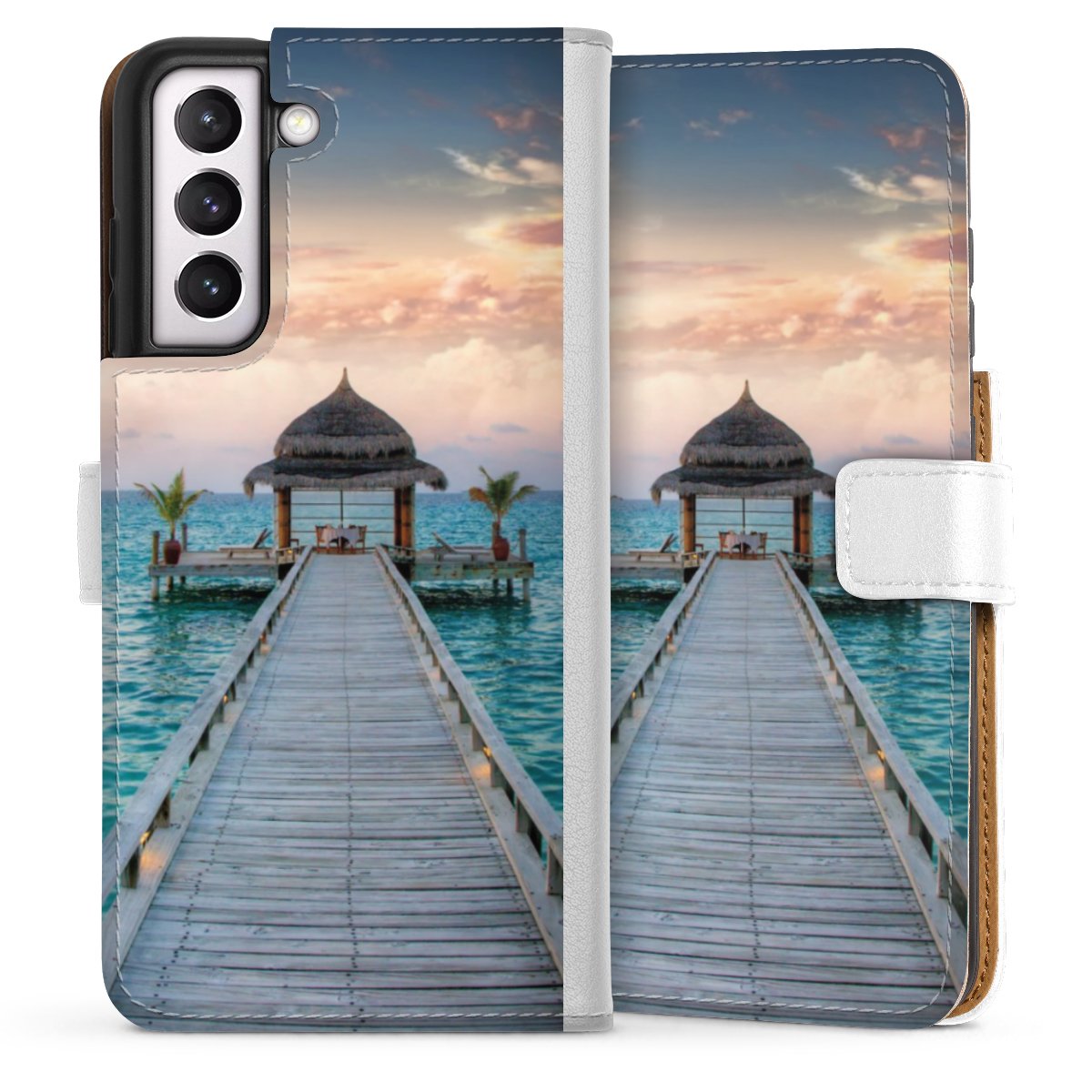 For our Sideflip Case we are using our advanced direct printing technology. The back and frontside are fully printabale, the inside of the phone bag is left unprinted. You can order the phone case without print, printed completely or also with a partial print.